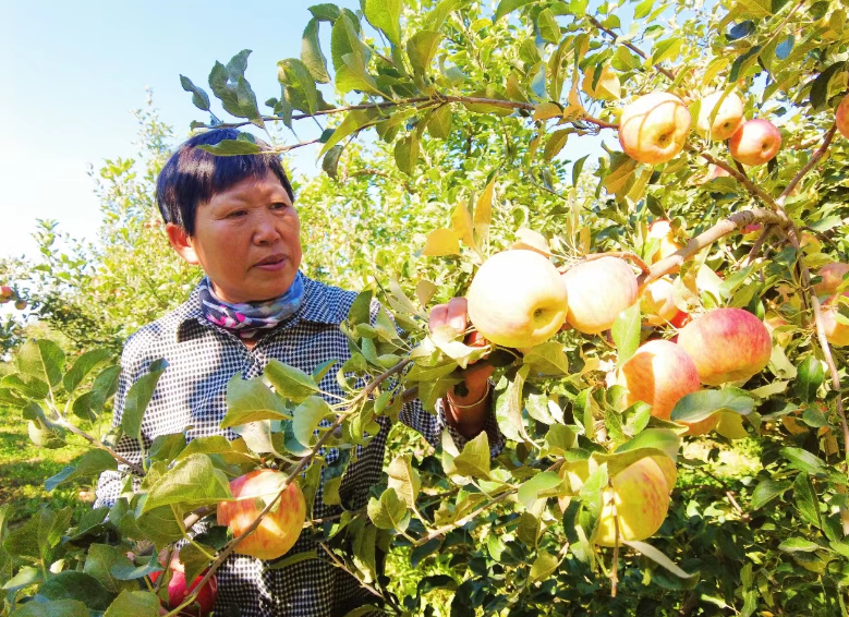 朱淑兰种植苹果已有30多年的时间,她在两个村承包了200亩苹果园,栽植蜜脆、红富士、寒富、嘎啦、红星等品种。她通过苹果最佳养分管理、水肥一体化、无公害防治等技术,总结出了独特的纺锤形省力化树形修剪技术,达到绿色食品苹果生产技术标准规程。