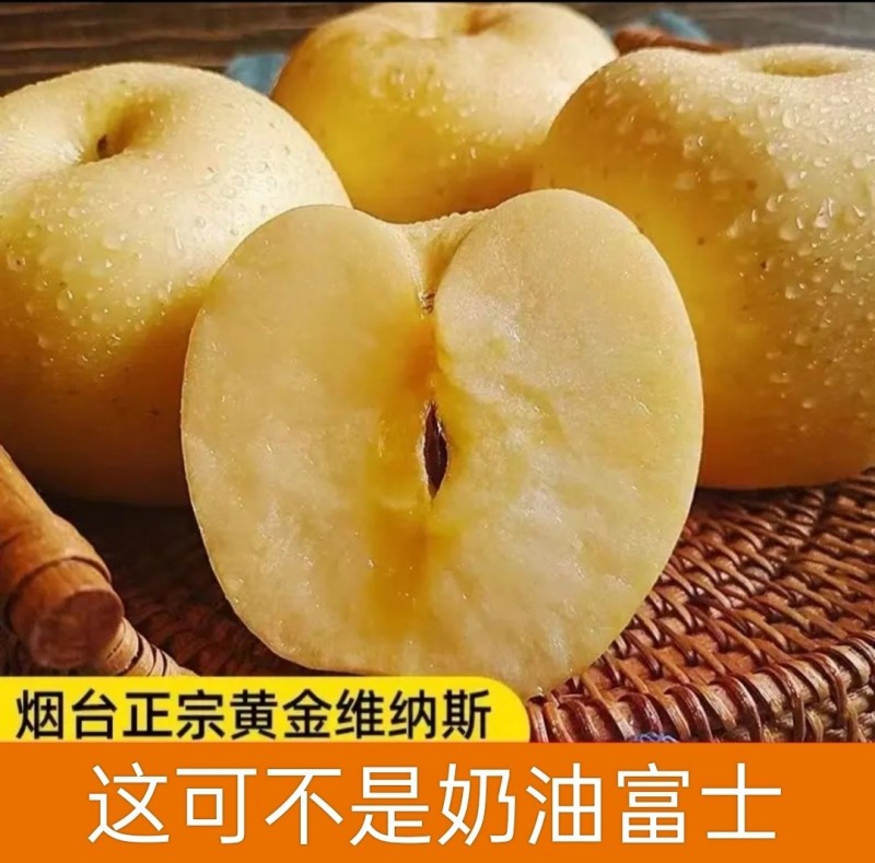 山东烟台维纳斯黄金苹果新鲜现摘脆甜多汁非奶油富士苹果批发代发