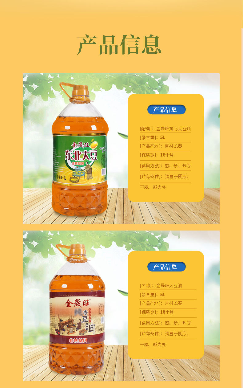家庭实用装5L大豆油 金晟旺非转基因大豆 商用