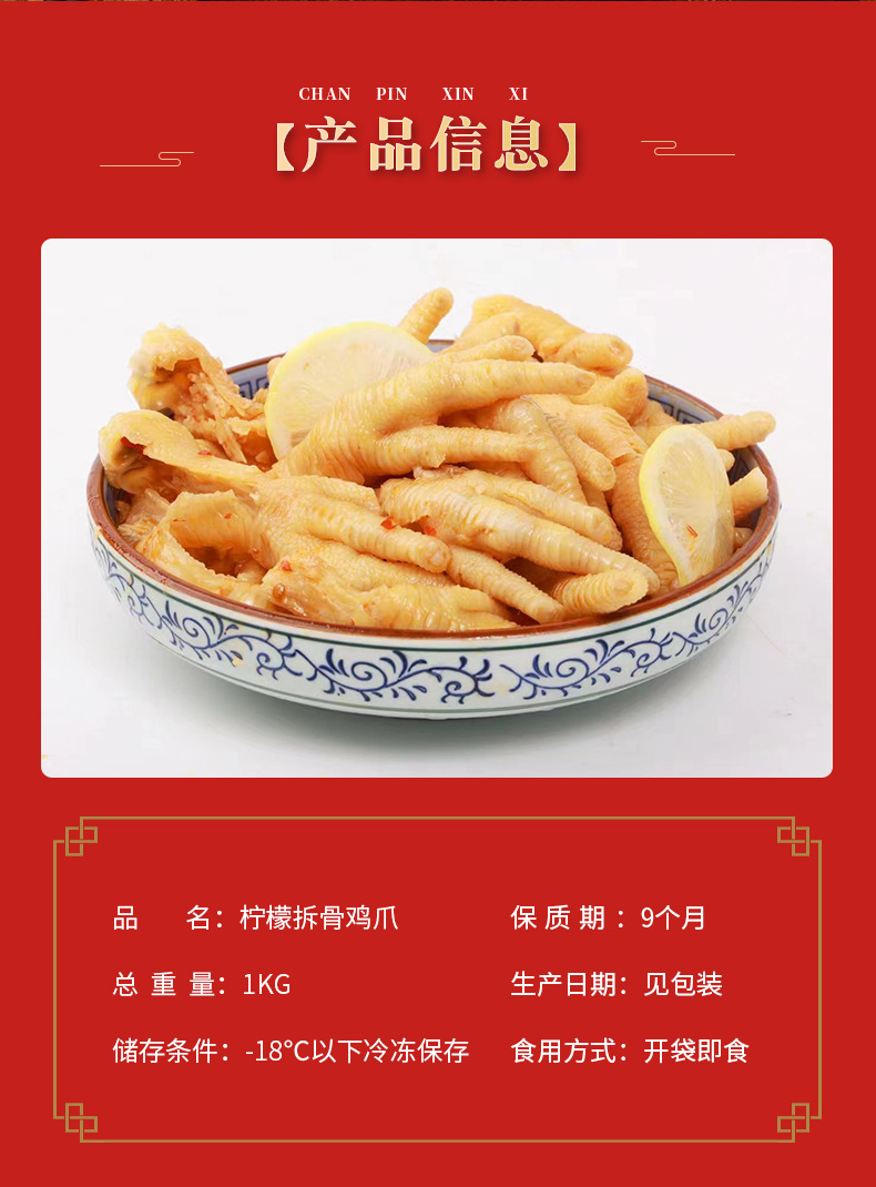 柠檬拆骨鸡爪1KG拆骨袋装凤爪追剧零食休闲零食凤爪 袋装批发