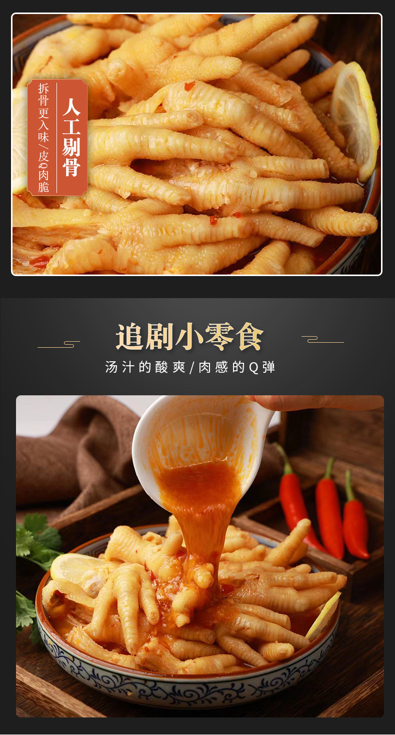 酸辣拆骨鸡爪拆骨袋装凤爪无骨凤爪无骨鸡爪休闲零食凤爪 1KG袋装