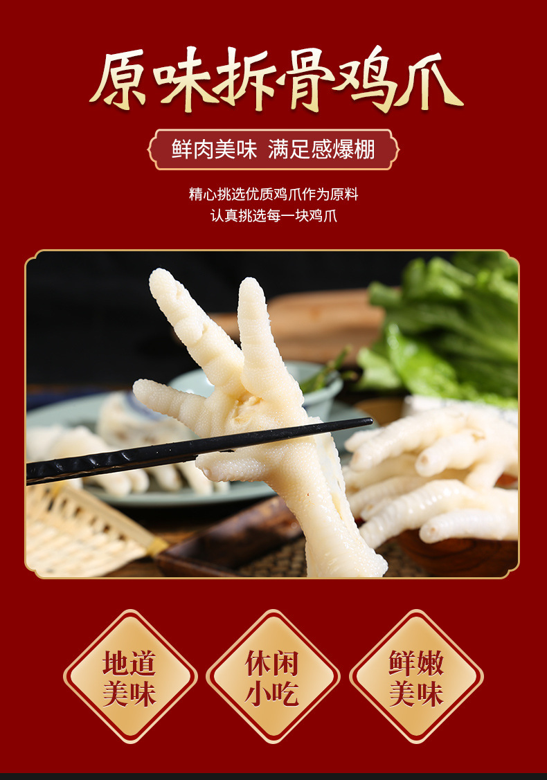 酸辣拆骨鸡爪拆骨袋装凤爪无骨凤爪无骨鸡爪休闲零食凤爪 1KG袋装