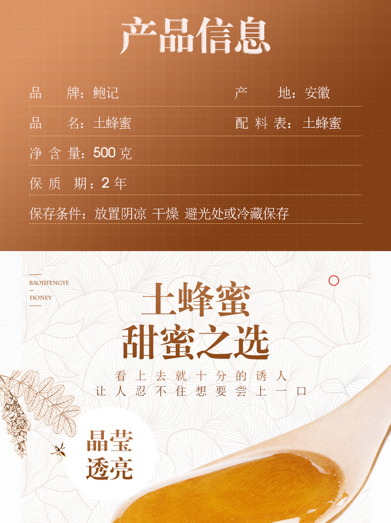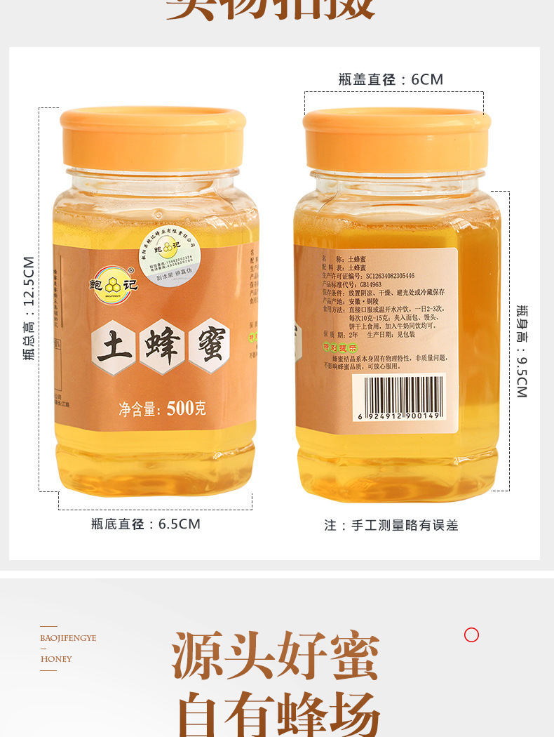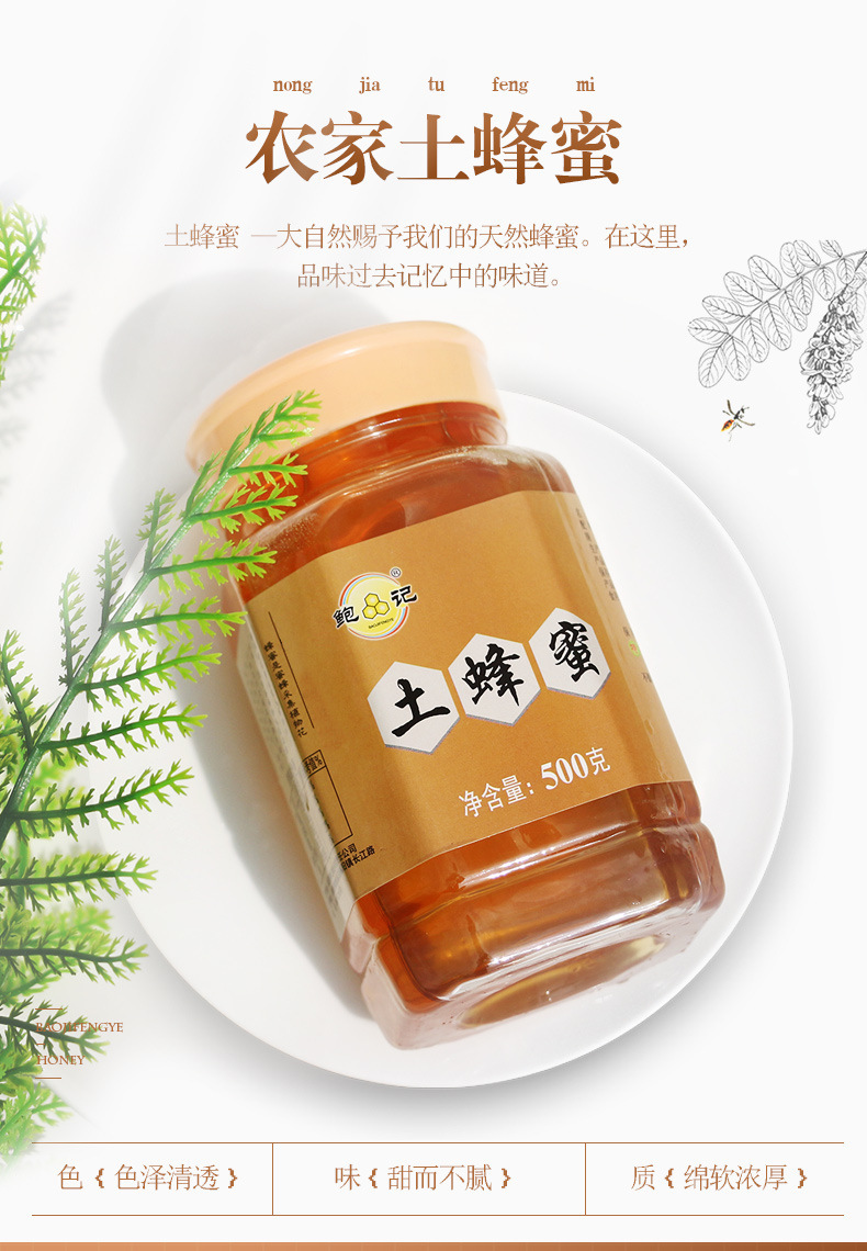 【源头厂家】鲍记农家自产土蜂蜜500g批发椴树蜜百花蜜批 发瓶装蜂蜜