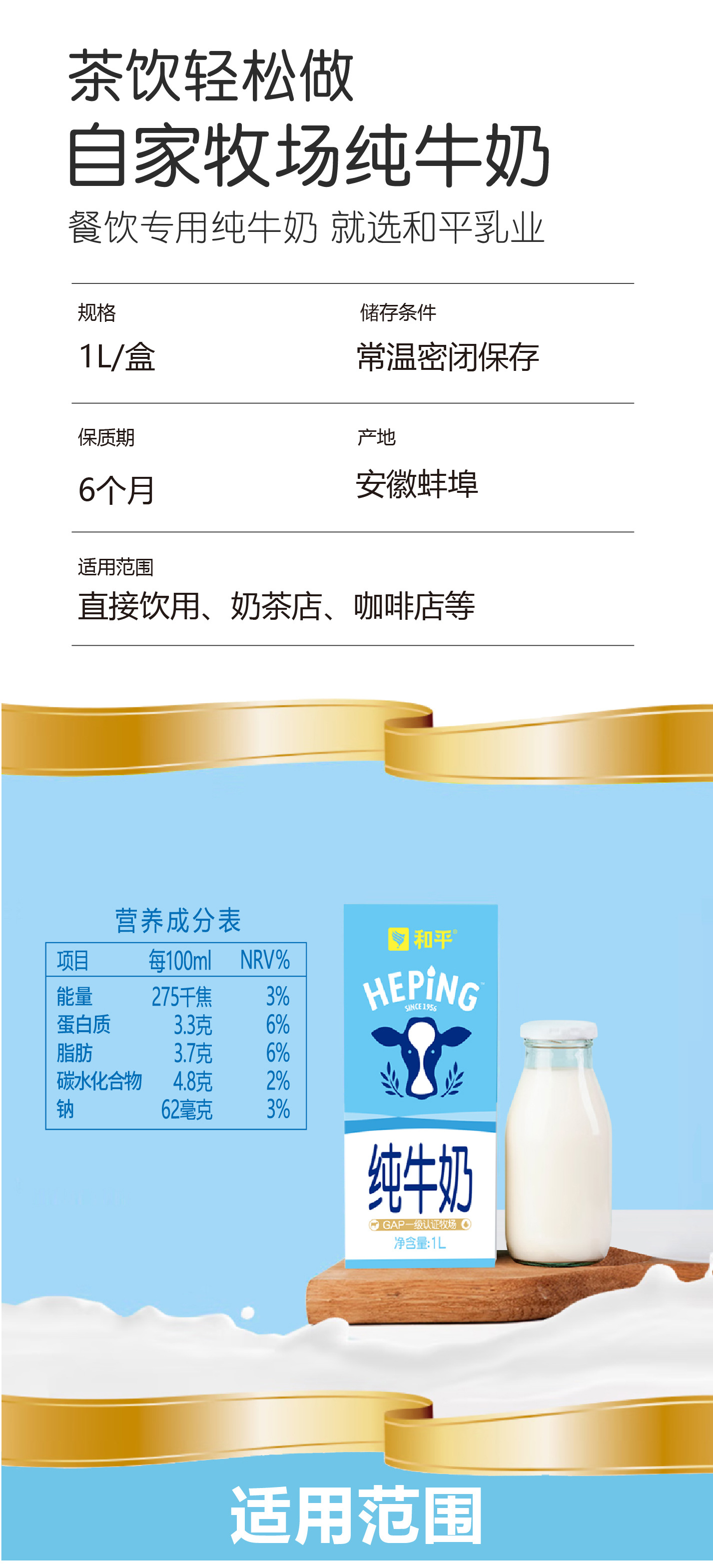 1L纯牛奶*6适用奶茶咖啡烘焙支持一件代发,诚招分销!