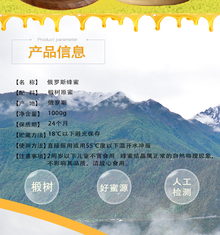 俄罗斯椴树蜂蜜贵丰进口蜜源自然无添加雪蜜卡扣大瓶装1000克