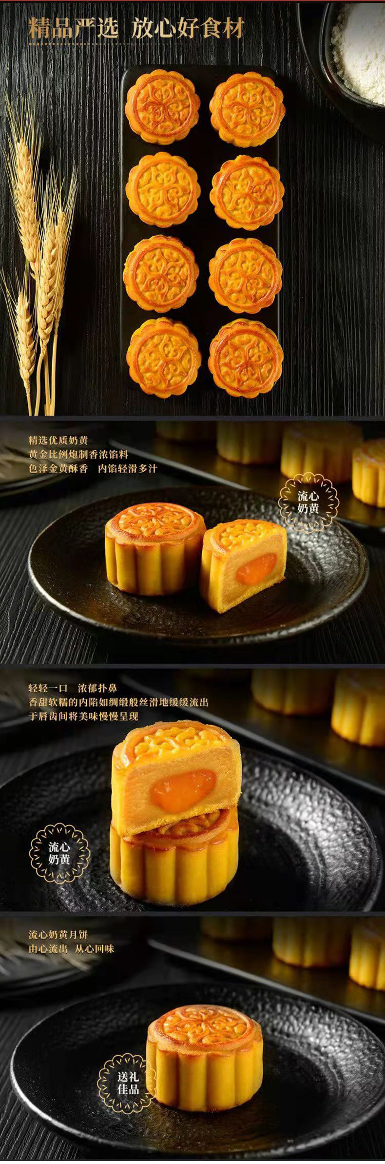 富锦流心奶黄月饼 流心抹茶巧克力榴莲黑松露鹅肝酱酥皮月饼厂家