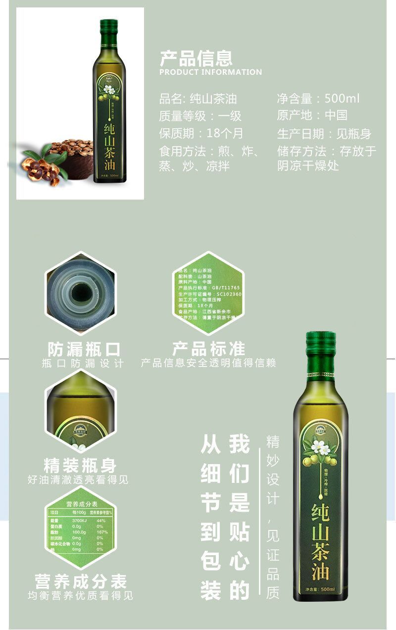 一级冷榨山茶油500毫升餐厅酒店家用茶籽油食用油婴儿月子油礼品