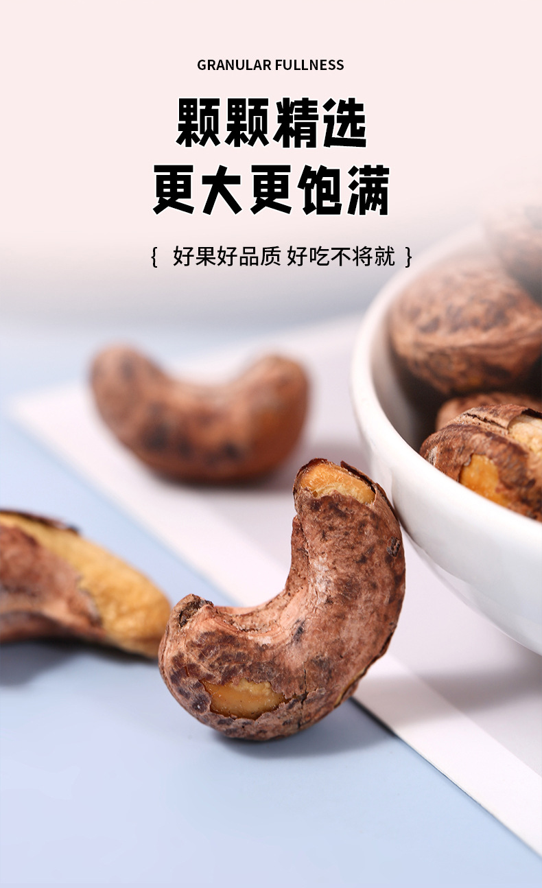 越南腰果袋装 带皮腰果500g真空袋装盐焗炭烧紫皮果坚果年货特产