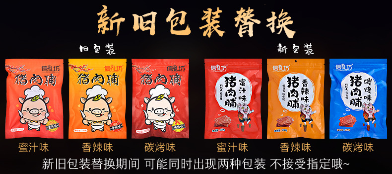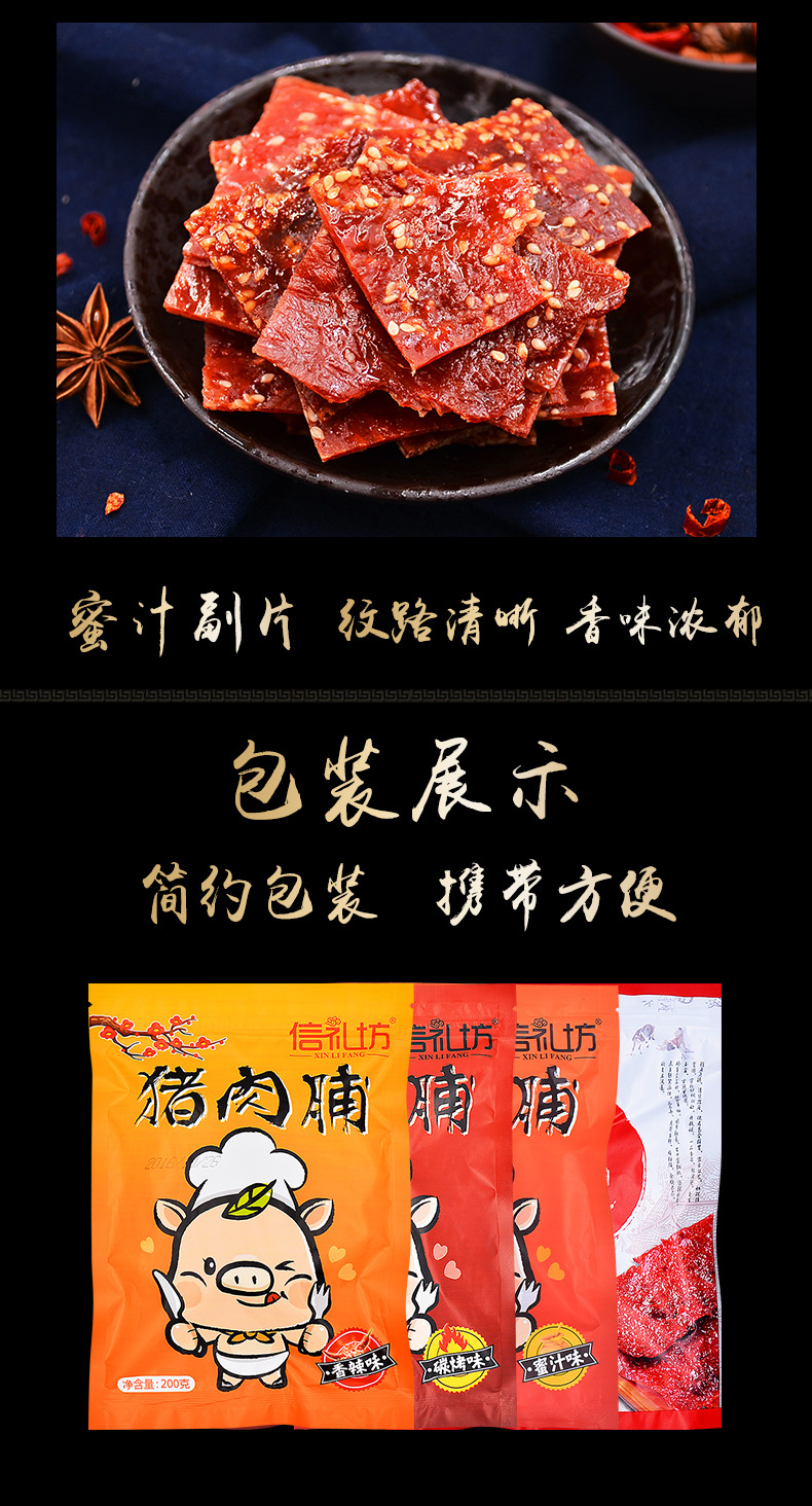 信礼坊零食食品 靖江特产 蜜汁/香辣/碳烤三味猪肉脯100g*50包