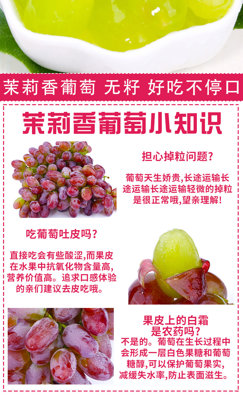 【当季款】茉莉香葡萄2斤 当季新鲜水果郁金香无籽香甜提子整发