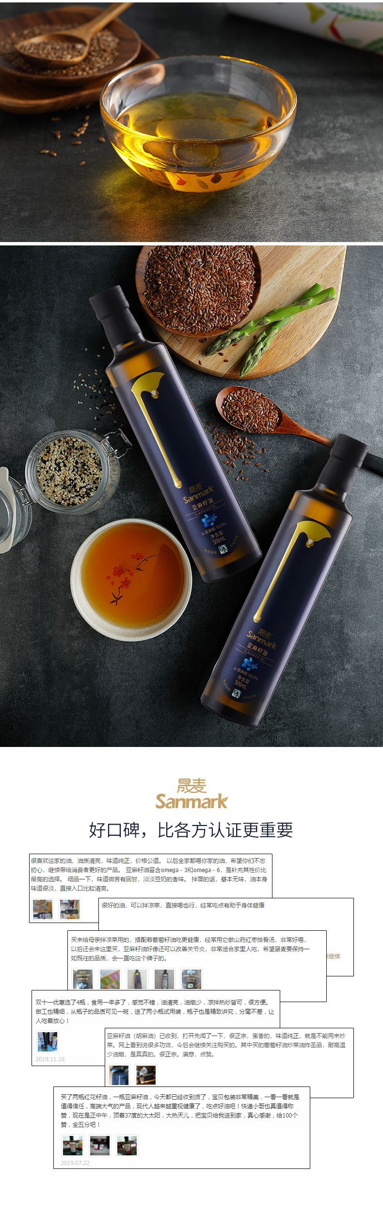 晟麦亚麻籽油纯低温物理压榨初冷榨食用亚麻子油250ml