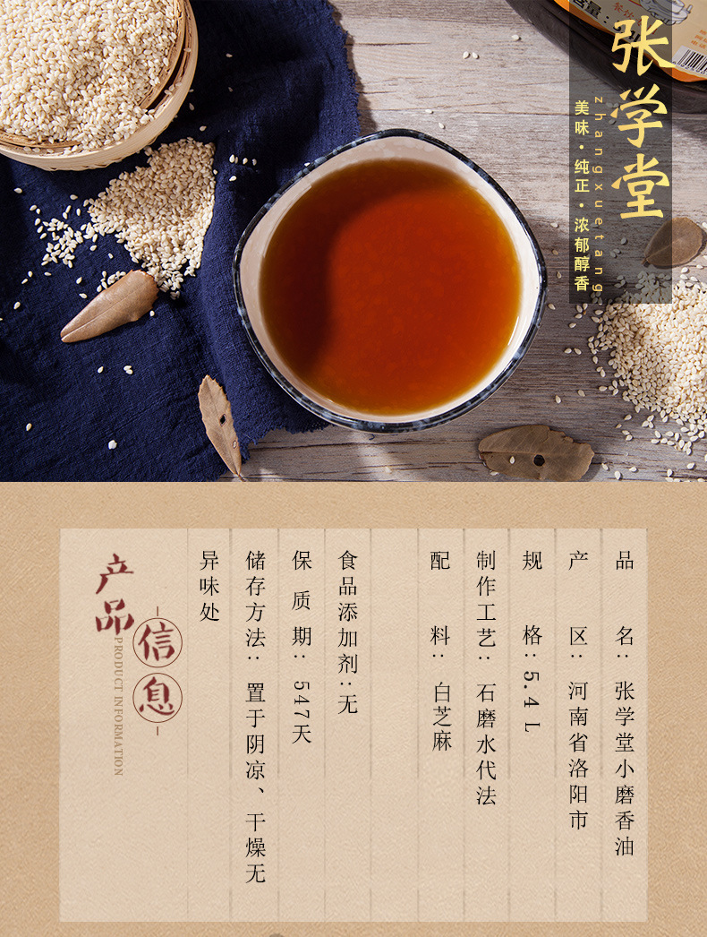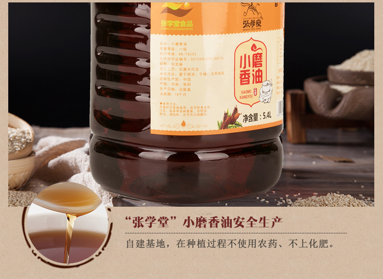 餐饮批发 张学堂纯芝麻油5.4L装 串串油碟 火锅香油调味油