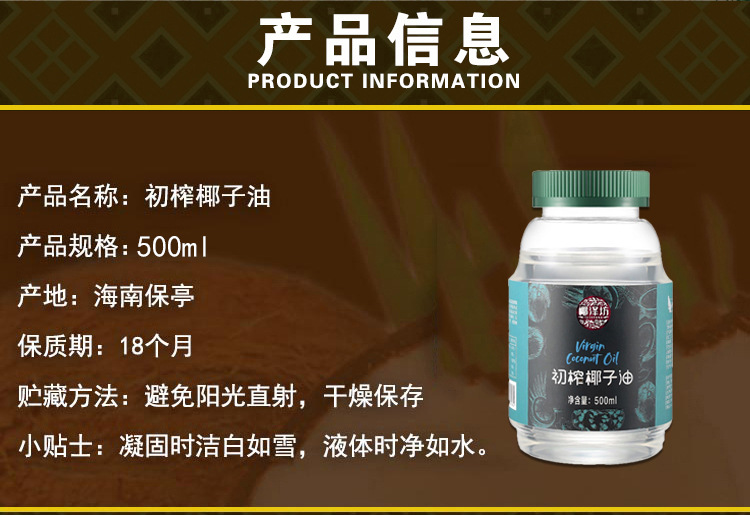 【厂家直销】椰泽坊初榨椰子油海南特产食用椰子油口服大瓶更实惠