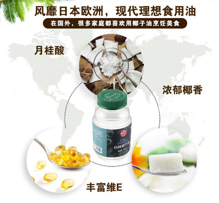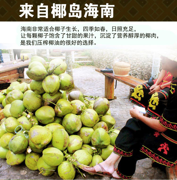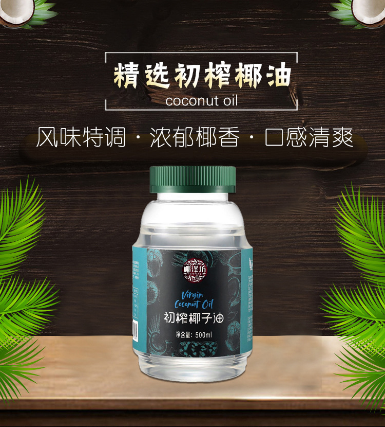 椰泽坊冷榨椰子油750ml 海南椰子油厂家直销食用油厂家批发