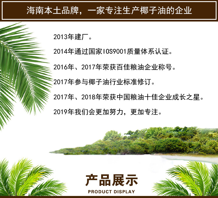 整箱海南特产冷榨椰子油源头厂家批发椰 油1000ml 罐装家用植物油