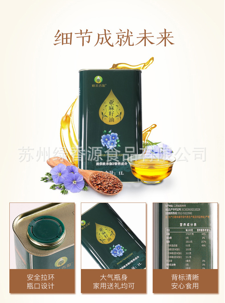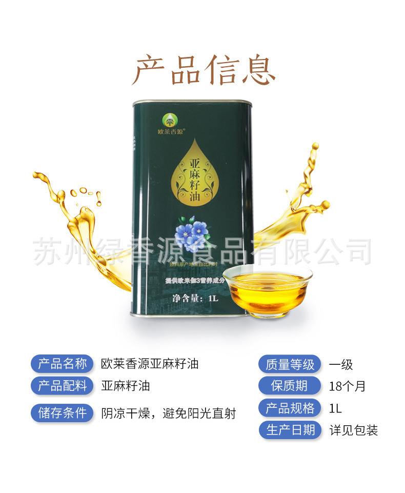 欧莱香源亚麻籽油1L铁罐装厂家供应植物油批发源头厂家团购会销