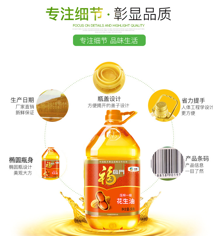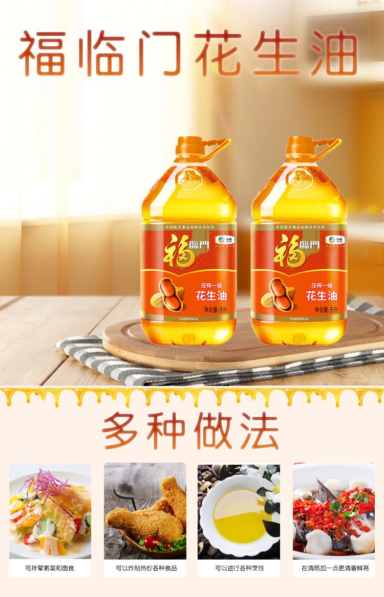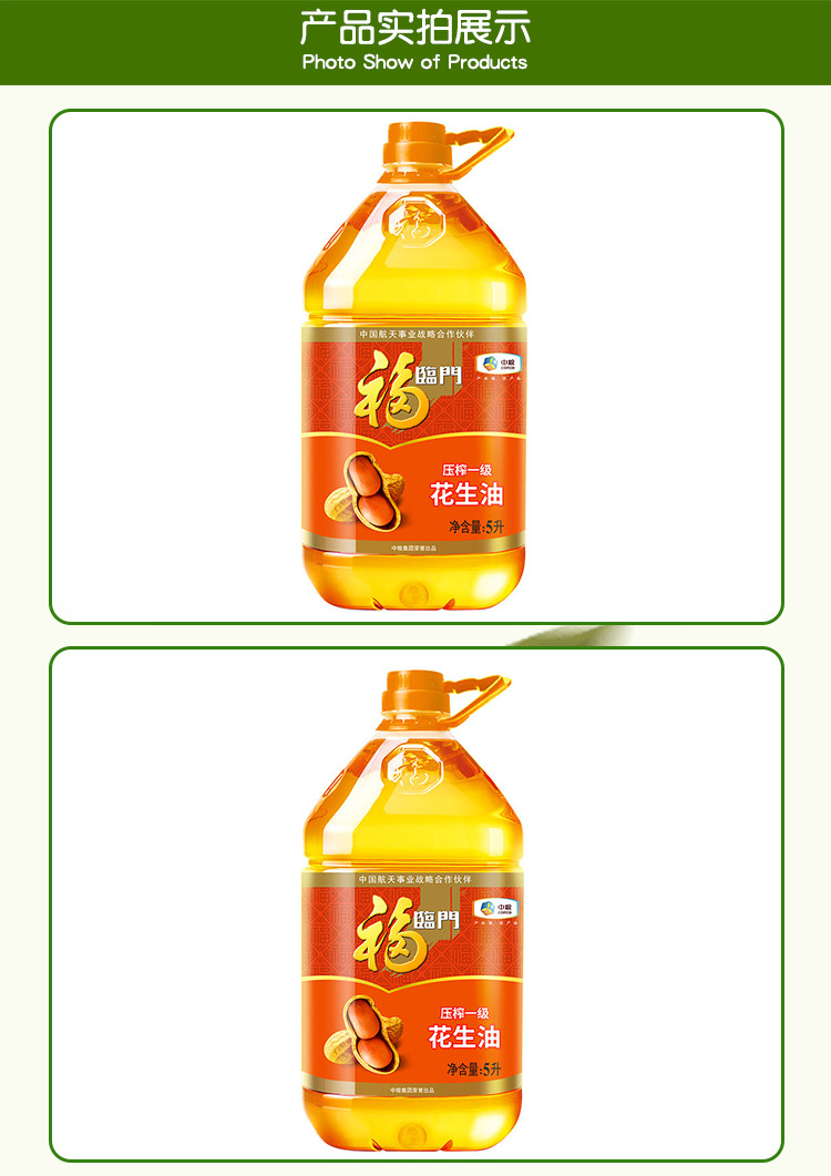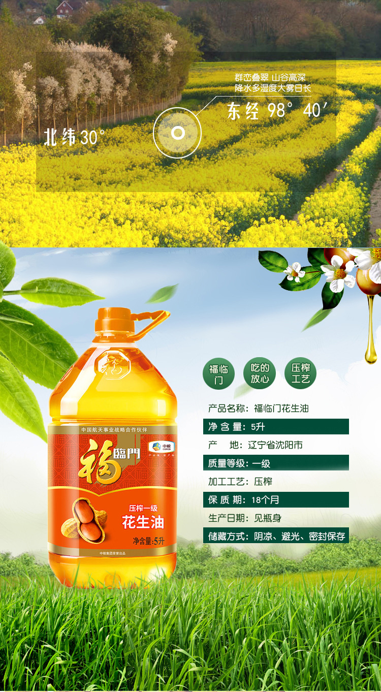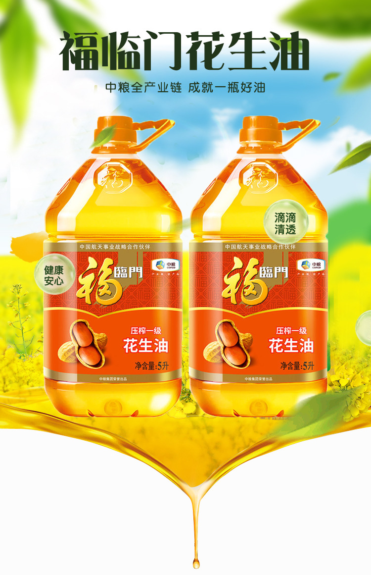中粮福临门浓香压榨一级花生油5L 食用油节日福利团购
