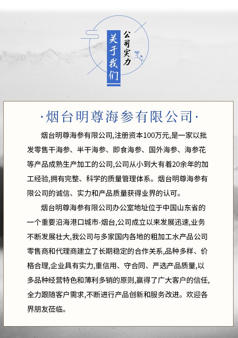 此款海参为大连深海淡干海参。本品默认发货规格为500克30到50只,如需其他规格拍下请备注或联系客服,成箱拿货可以咨询客服。