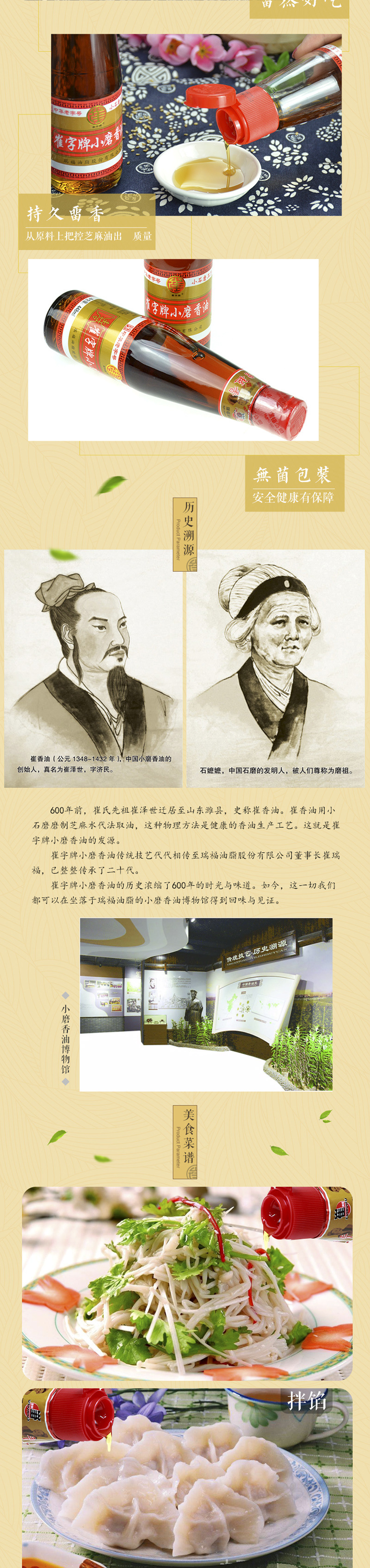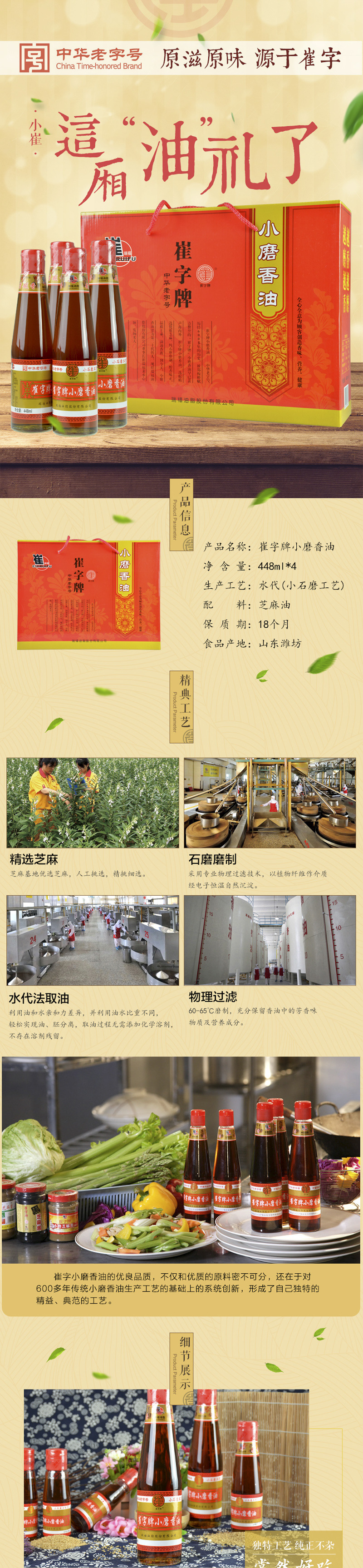 中华老字号崔字牌小磨纯香油芝麻酱芝麻油芝麻礼盒厂家直销