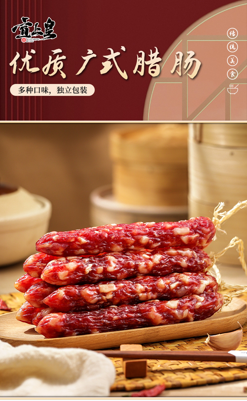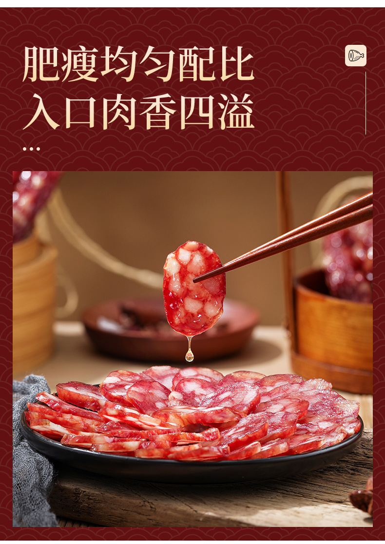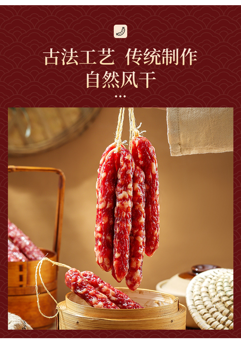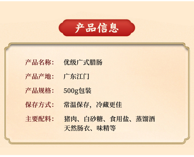 广式腊肠500克彩袋真空包装纯肉精制送礼优选广东特产传统工艺