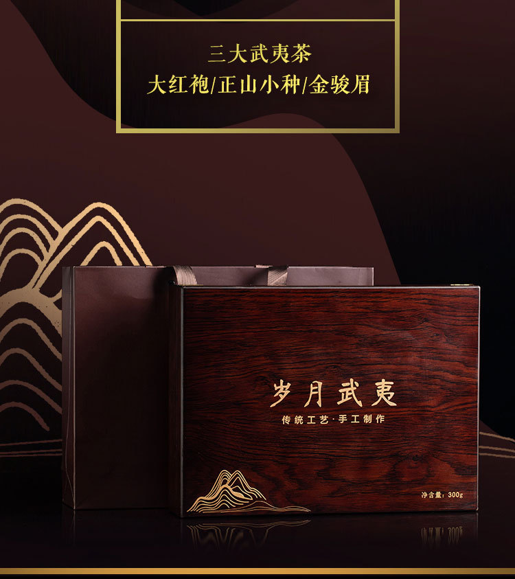 金骏眉红茶正山小种武夷岩茶大红袍茶叶礼盒装木盒30罐300克