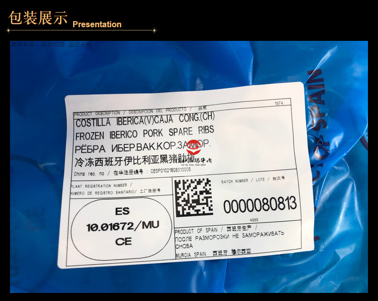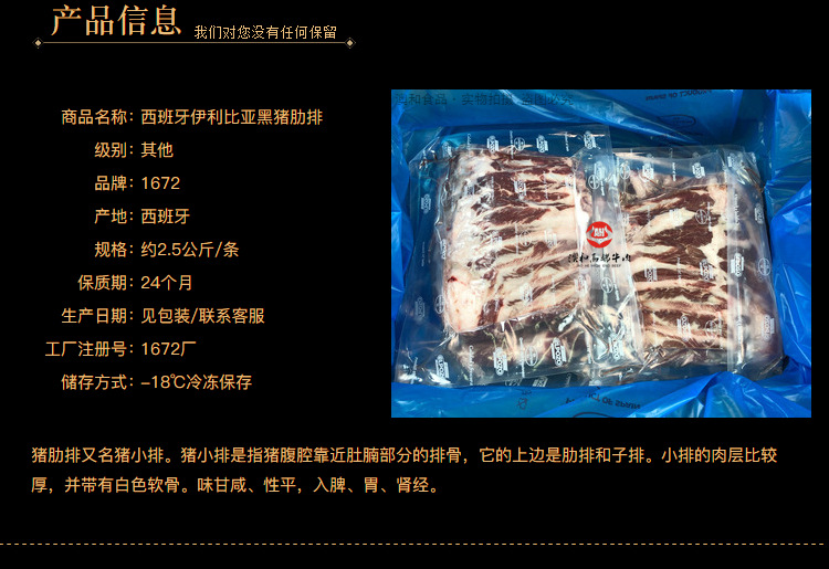西班牙1672伊利比亚黑猪肋排 冷冻黑猪排骨 雪花猪肉 带骨猪小排