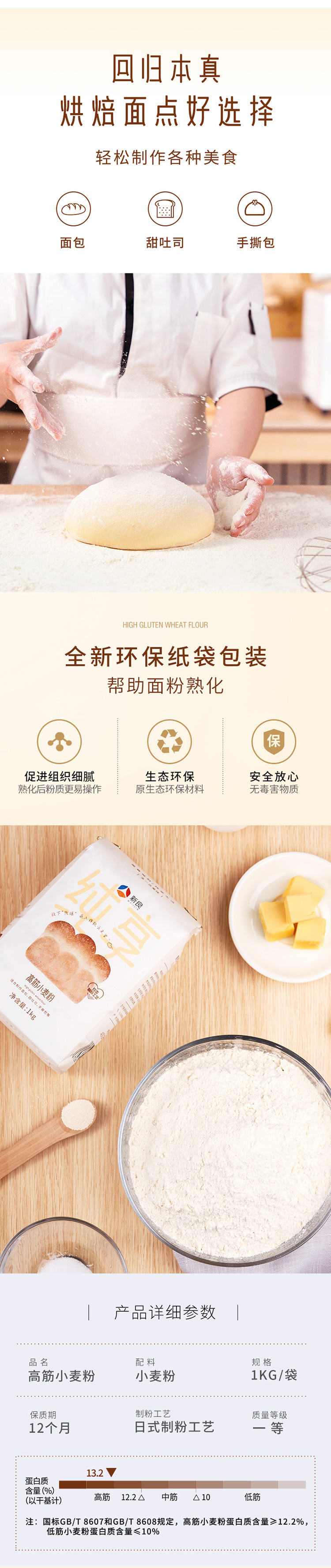 新良纯享高筋小麦粉1kg面包粉烘焙专用披萨日式吐司粉原材料家用