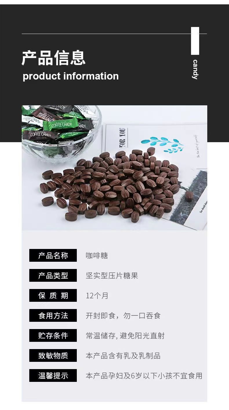 网红即食咖啡糖可嚼硬糖提神防困办公休闲小零食香醇浓郁压片糖果