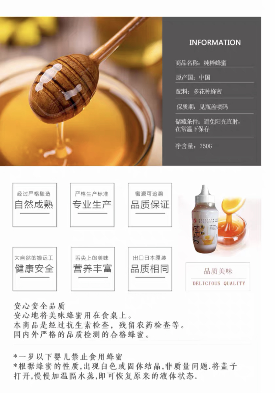 蜂之巢蜂蜜农家自产野外淳正原生蜜出口转内销售日本750g纯粹蜂蜜