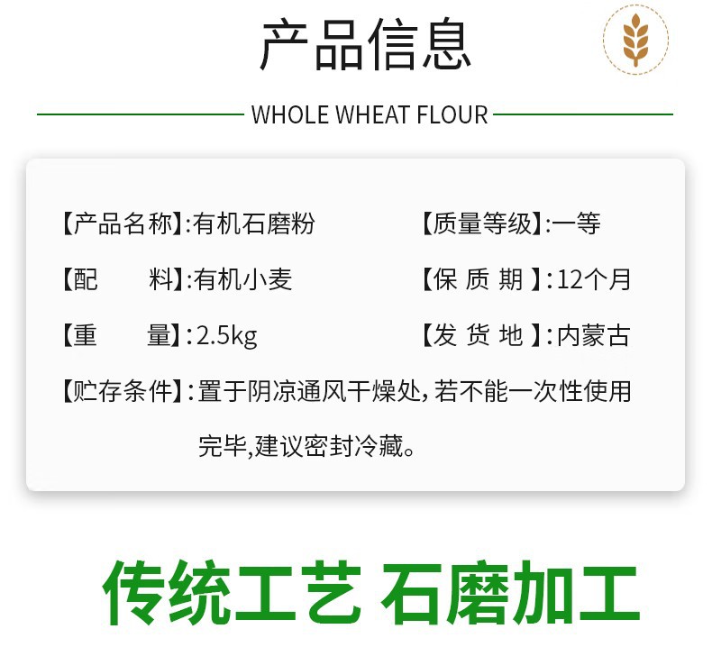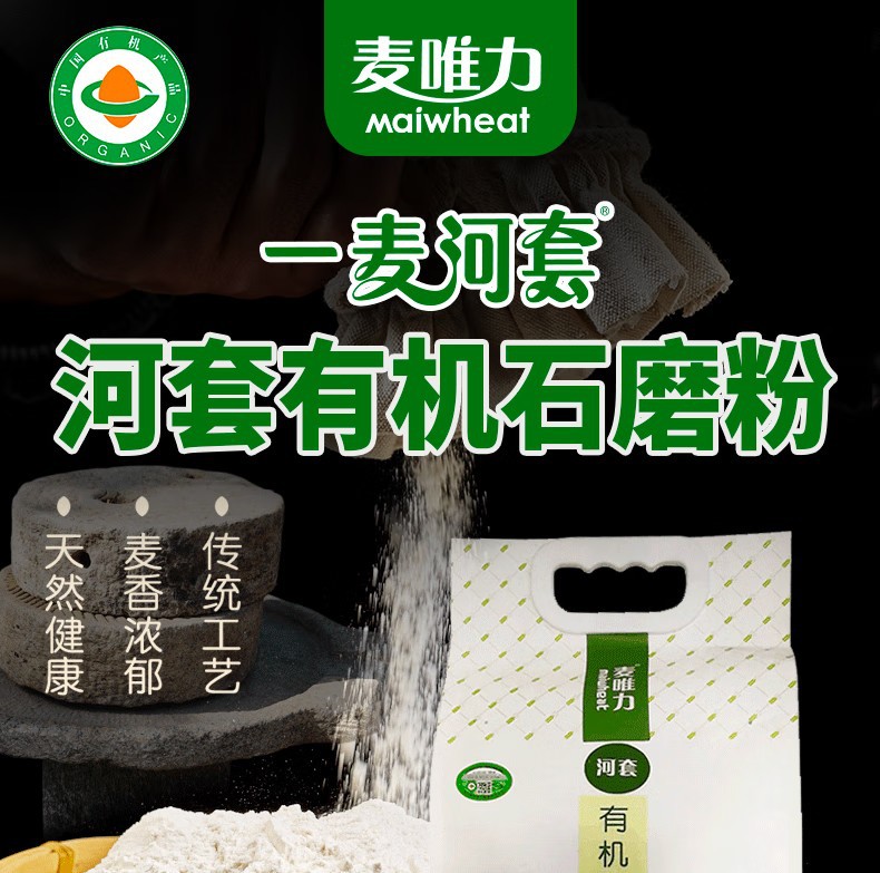麦唯力内蒙河套有机石磨粉2.5kg小麦粉面粉