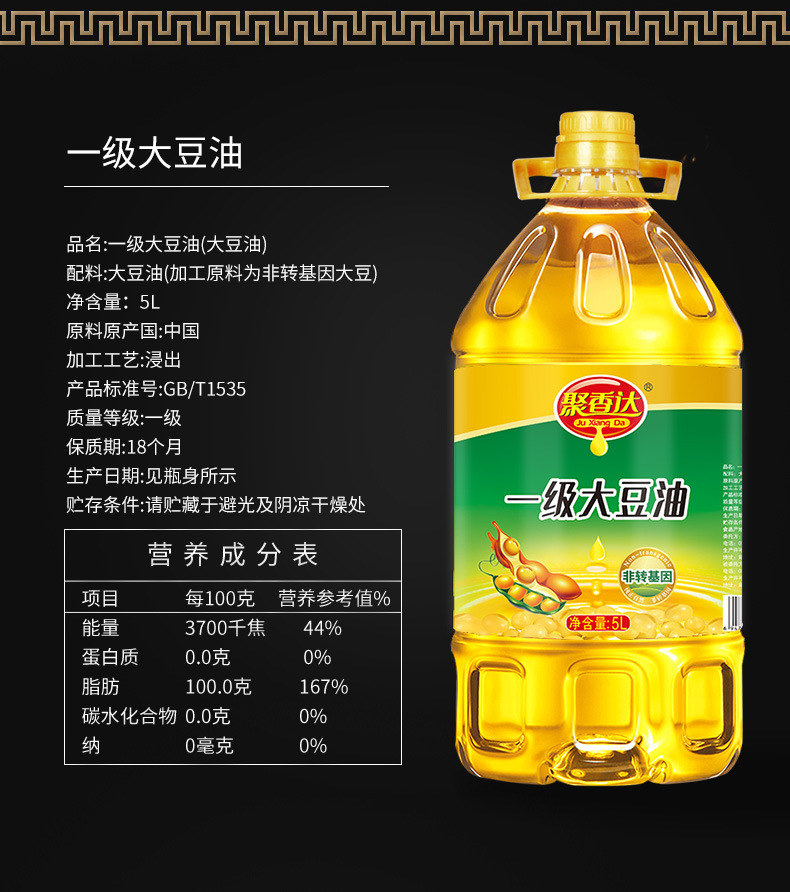 聚香达 一级非转基因大豆油 家用大桶