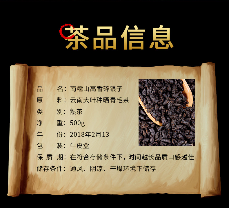 宏好吉茶叶 云南普洱茶 碎银子茶化石 高香型糯米香茶 500g批发