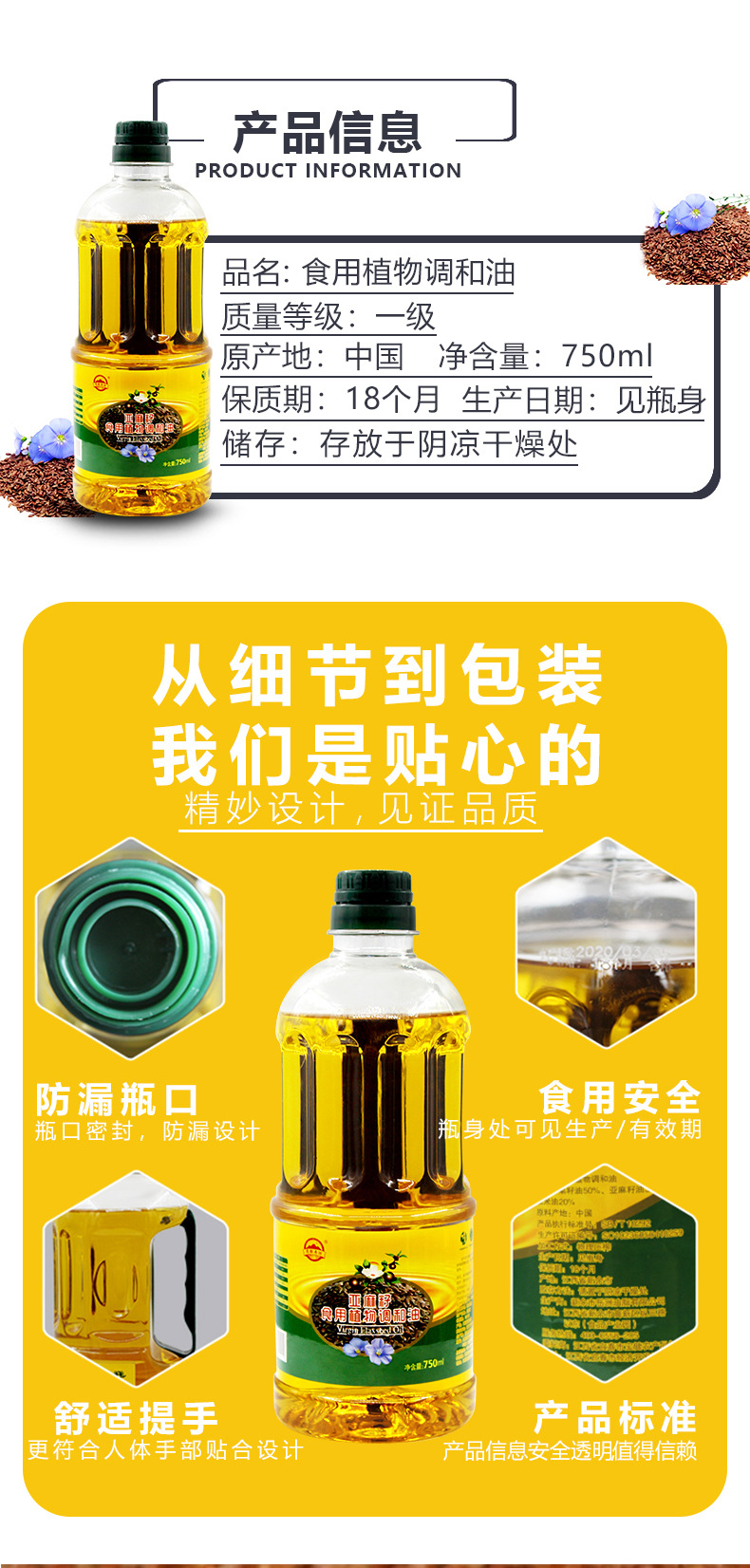 750ML亚麻籽食用植物调和油商务礼品公司奖品福利 会销一件代发