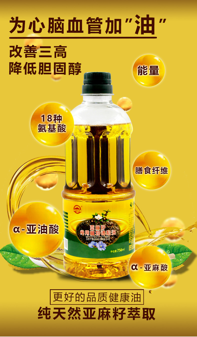 亚麻籽食用植物调和油500ML升亚麻籽油厂家直供礼品会议