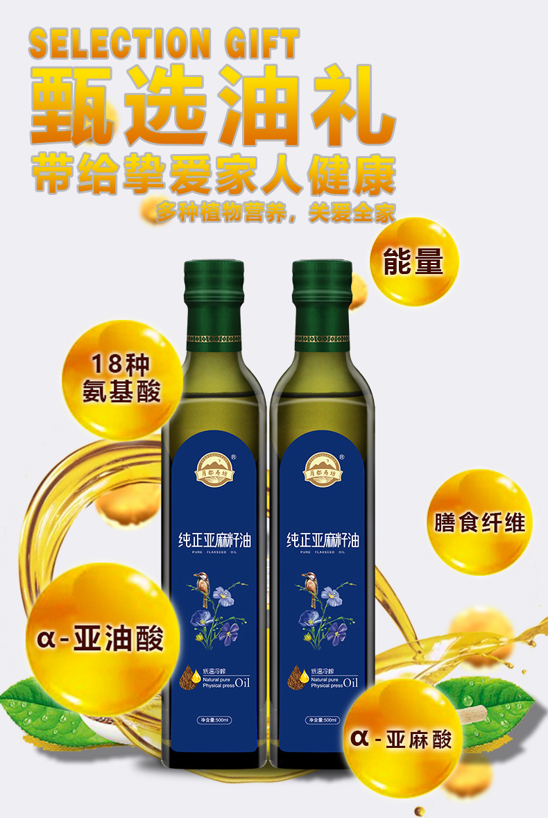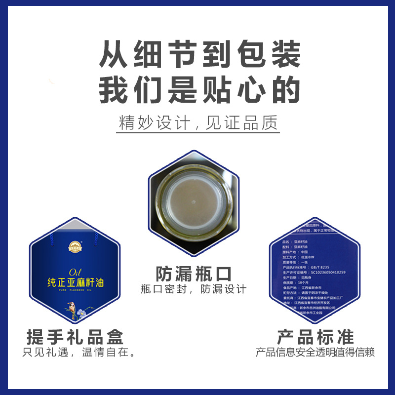 一级纯正亚麻籽油团购直销促销带货赠品礼品盒装玻璃瓶胡麻食用油