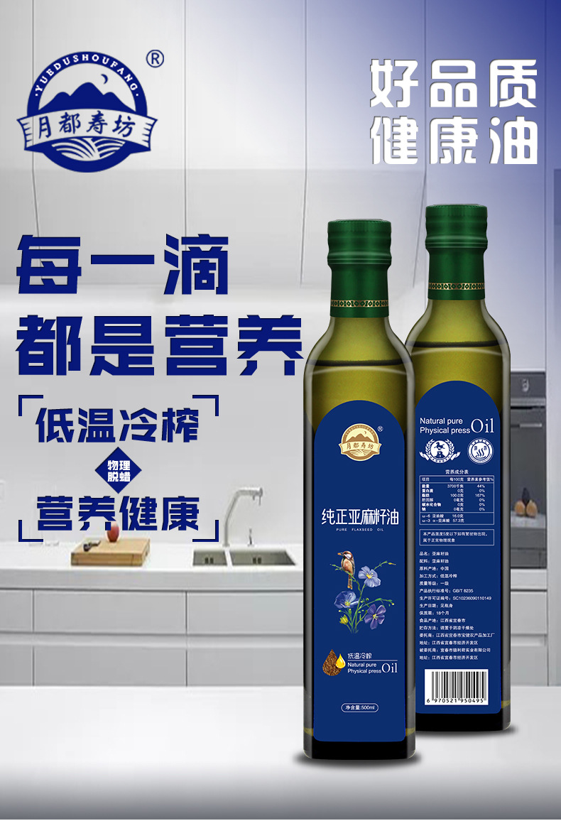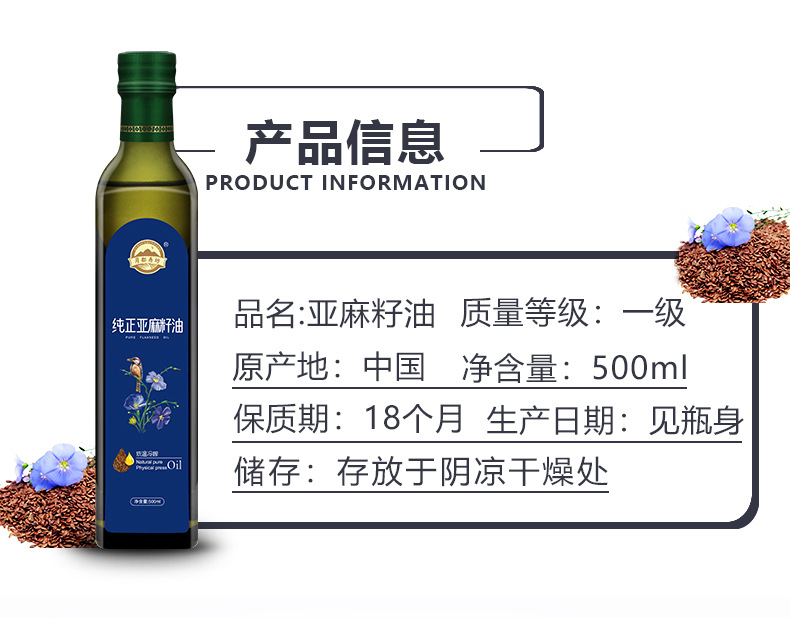 亚麻籽食用植物调和油500ML升亚麻籽油厂家直供礼品会议