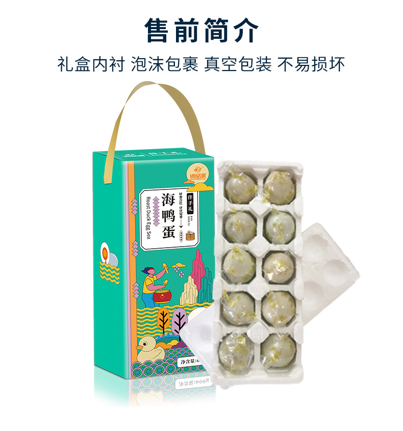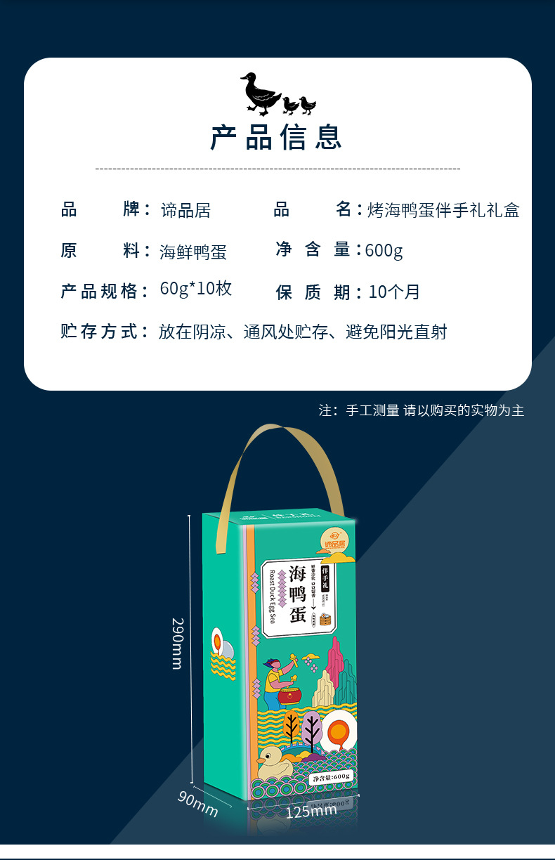 谛品居烤海鸭蛋礼盒装伴手礼熟咸鸭蛋60g*10枚开袋即食海鲜鸭蛋
