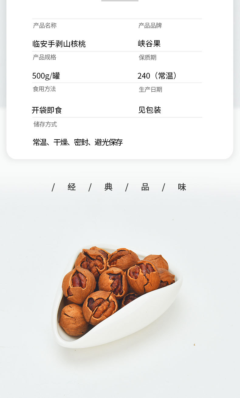 特好剥新货山核桃临安罐装手剥坚果500g干果袋装年货手拨小胡桃批
