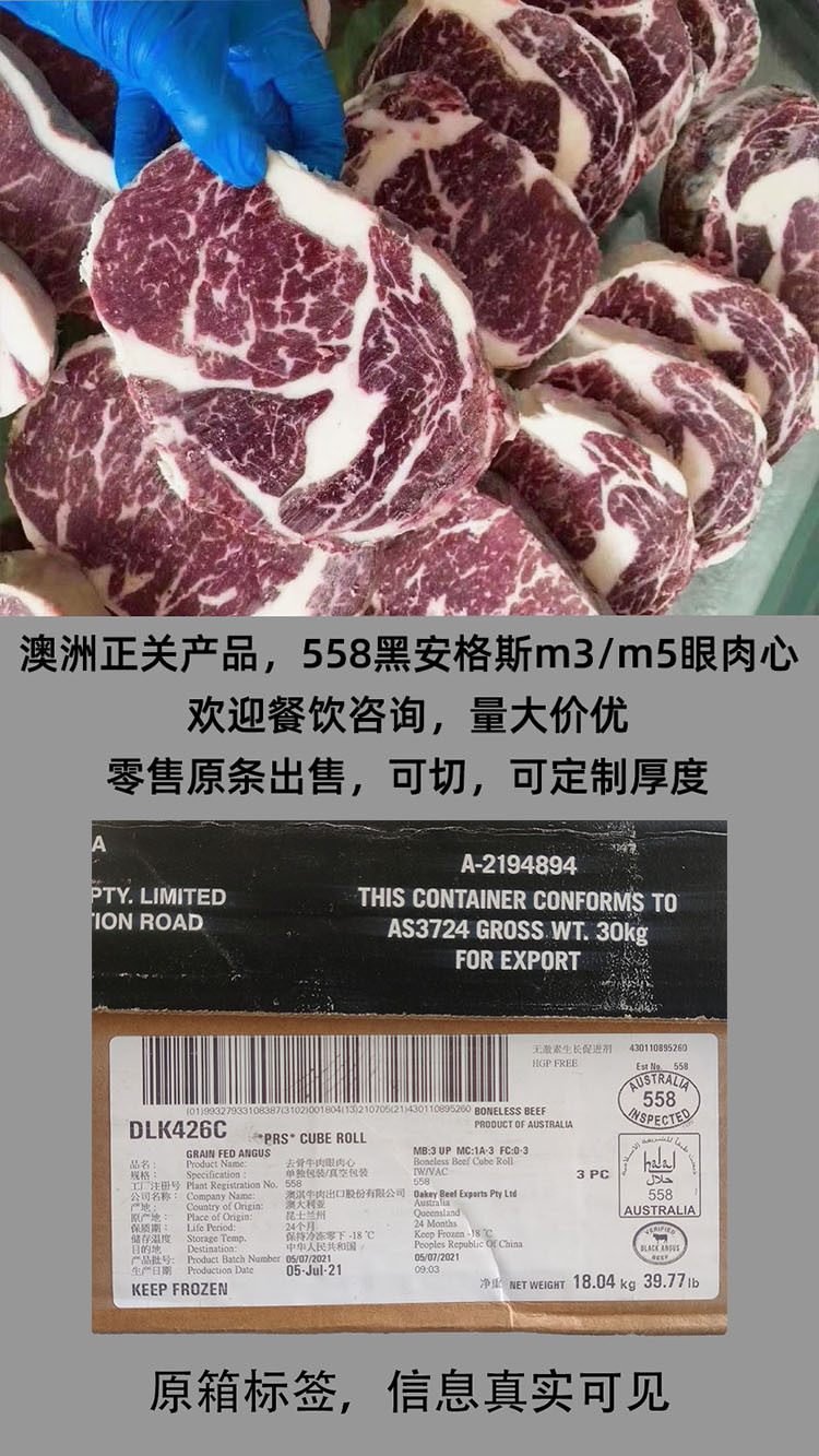 见阳牛排原切雪花眼肉心澳洲558安格斯肋眼谷饲300天M5M3去骨牛肉