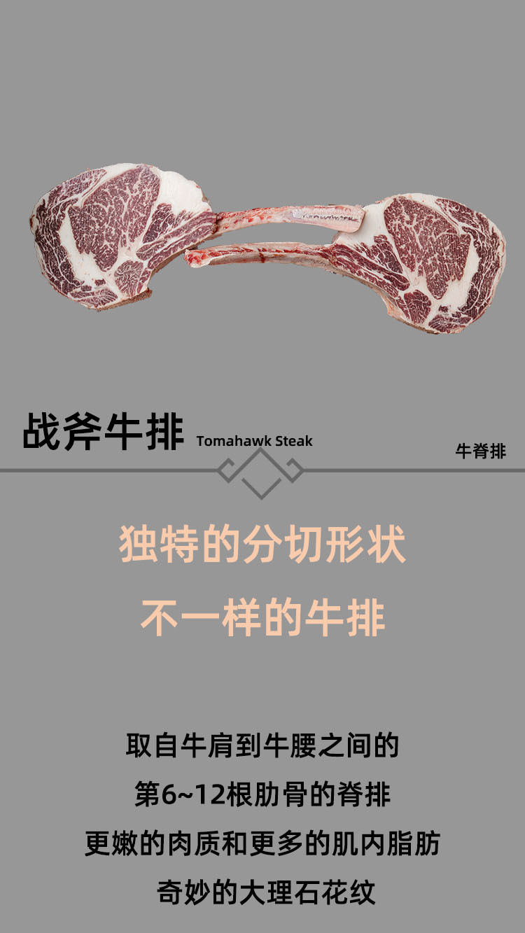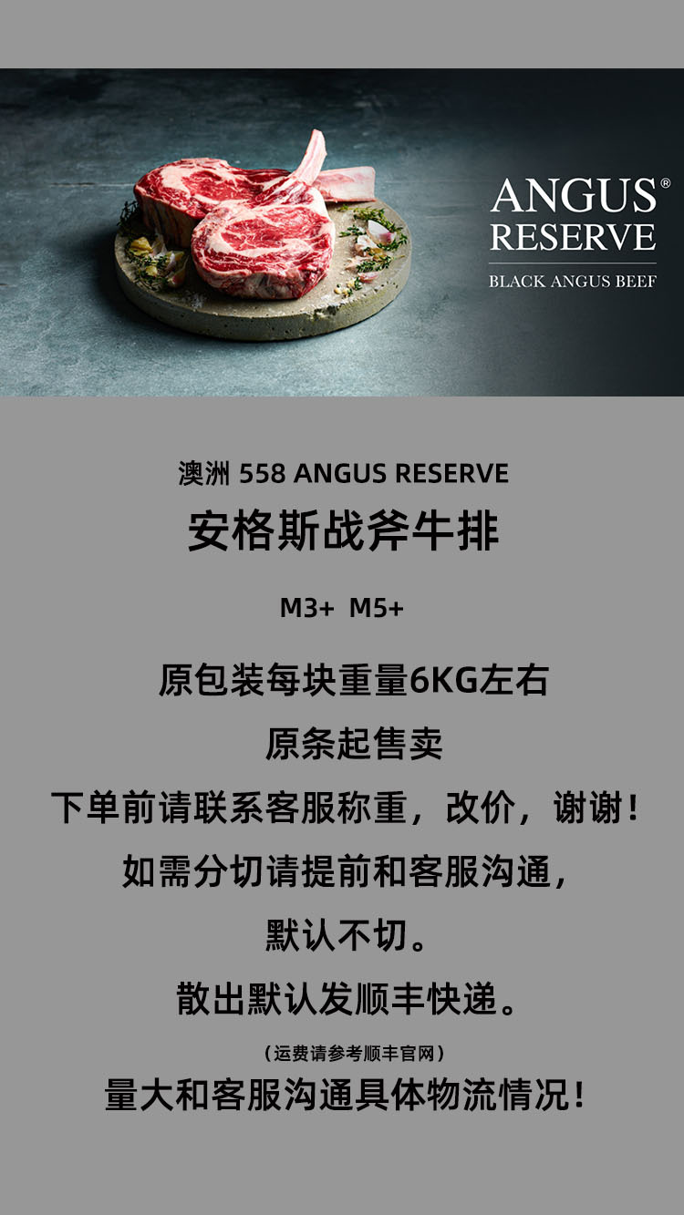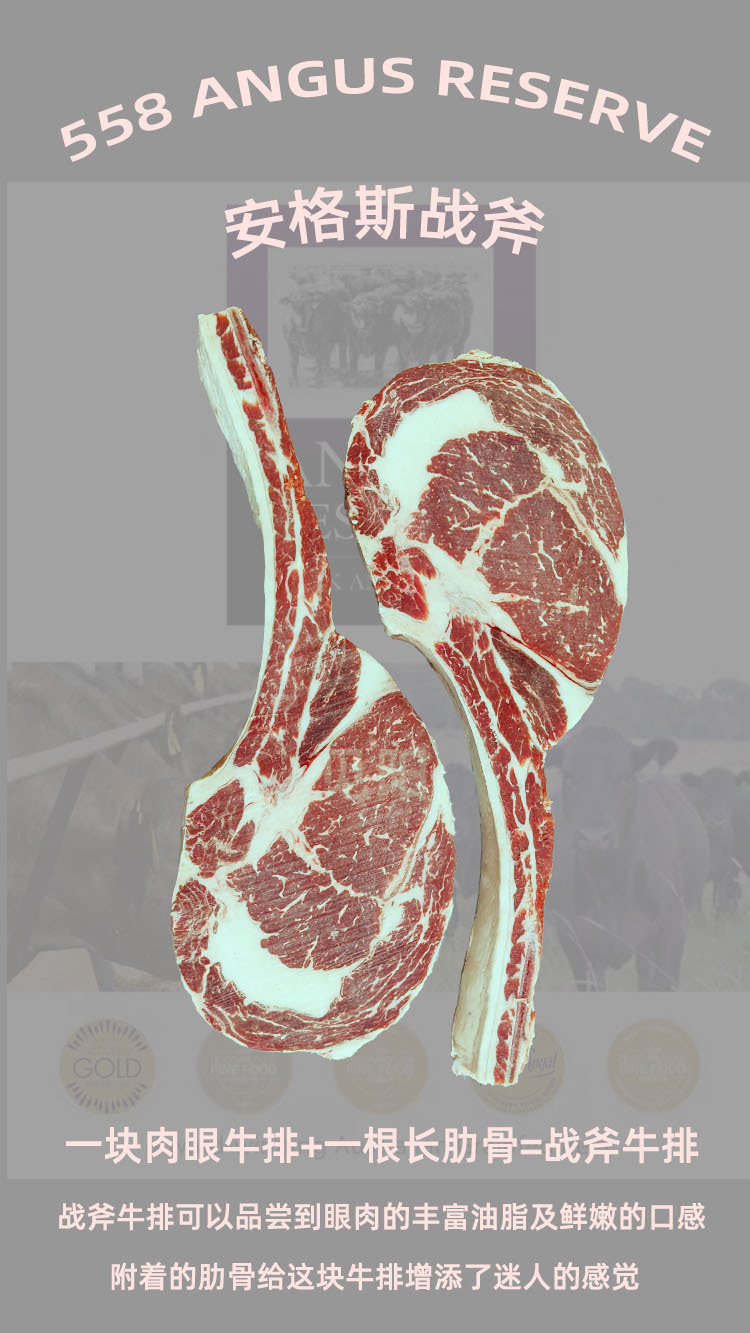 见阳战斧牛排原切澳洲558安格斯带牛脊排M3+ M5+带骨眼肉烧烤熟成