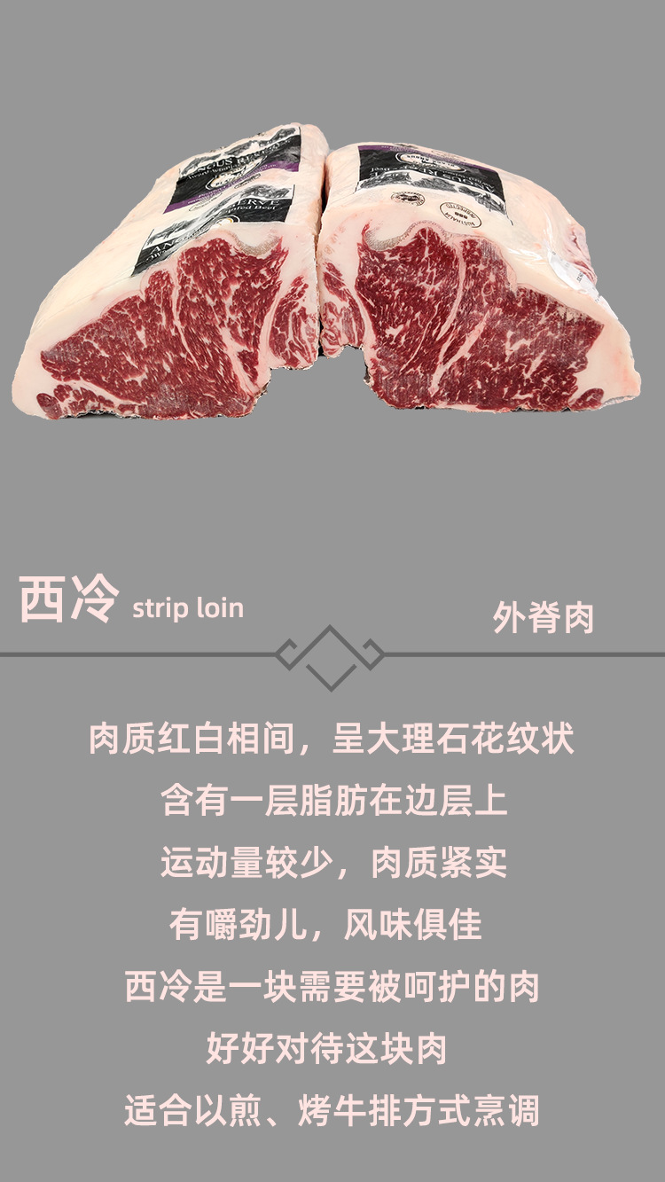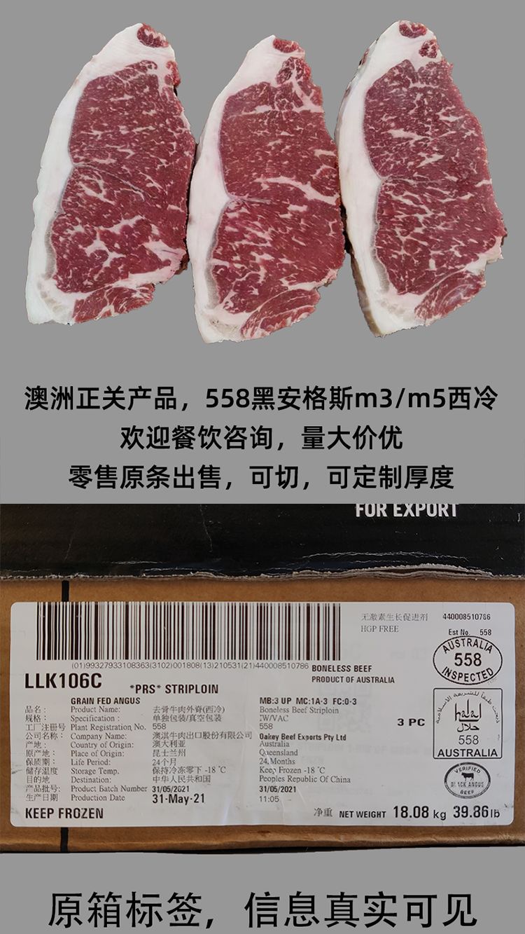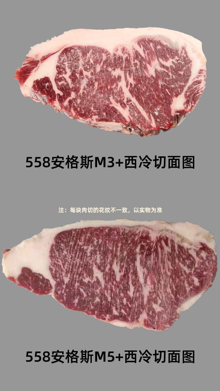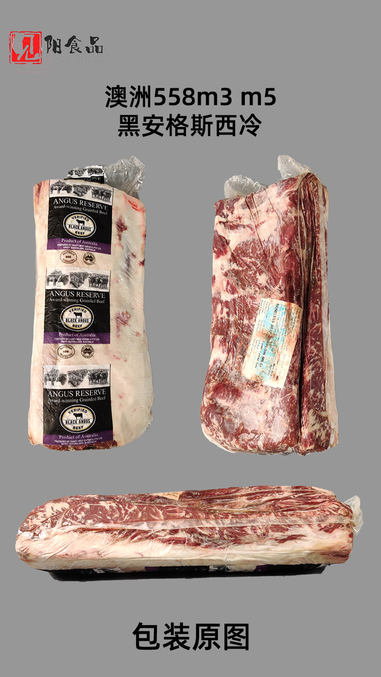 见阳原切安格斯西冷牛排澳洲558谷饲300天沙朗牛扒M3M5外脊整条出