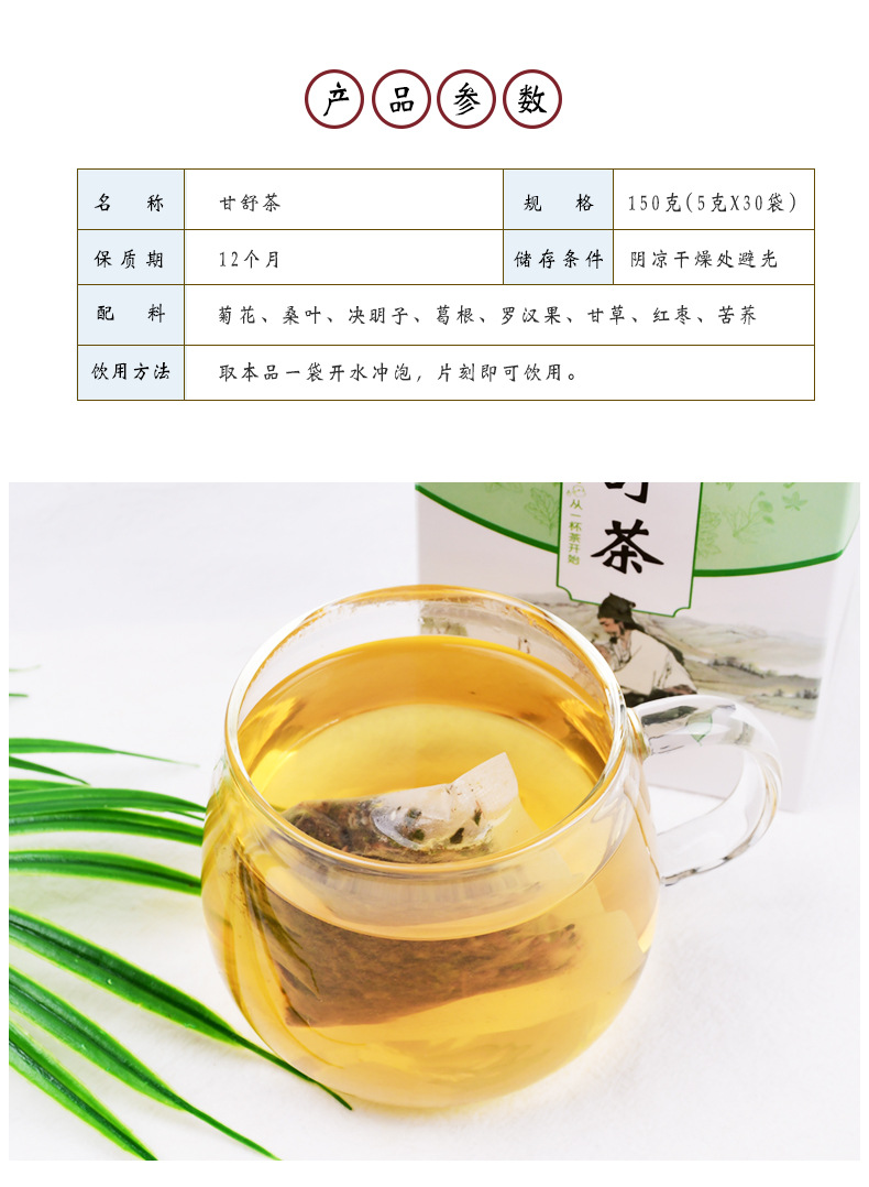 沁花苑 甘舒茶决明子菊花茶沪甘养甘茶汉方益甘茶150g袋泡代用茶