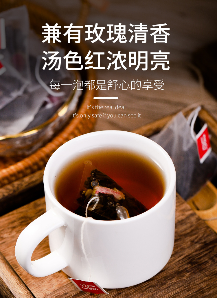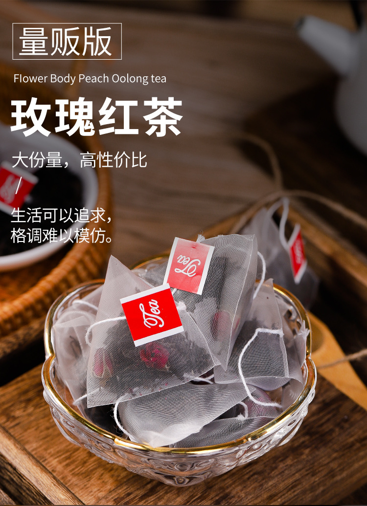 玫瑰红茶三角茶包玫瑰花茶红茶奶茶店专用饭店量贩装50包泡茶
