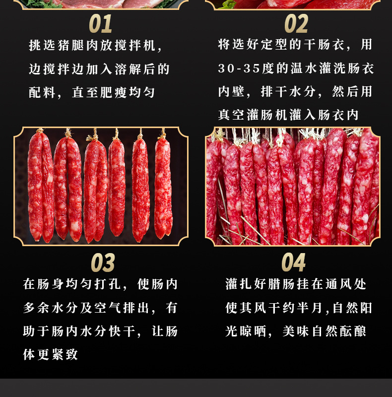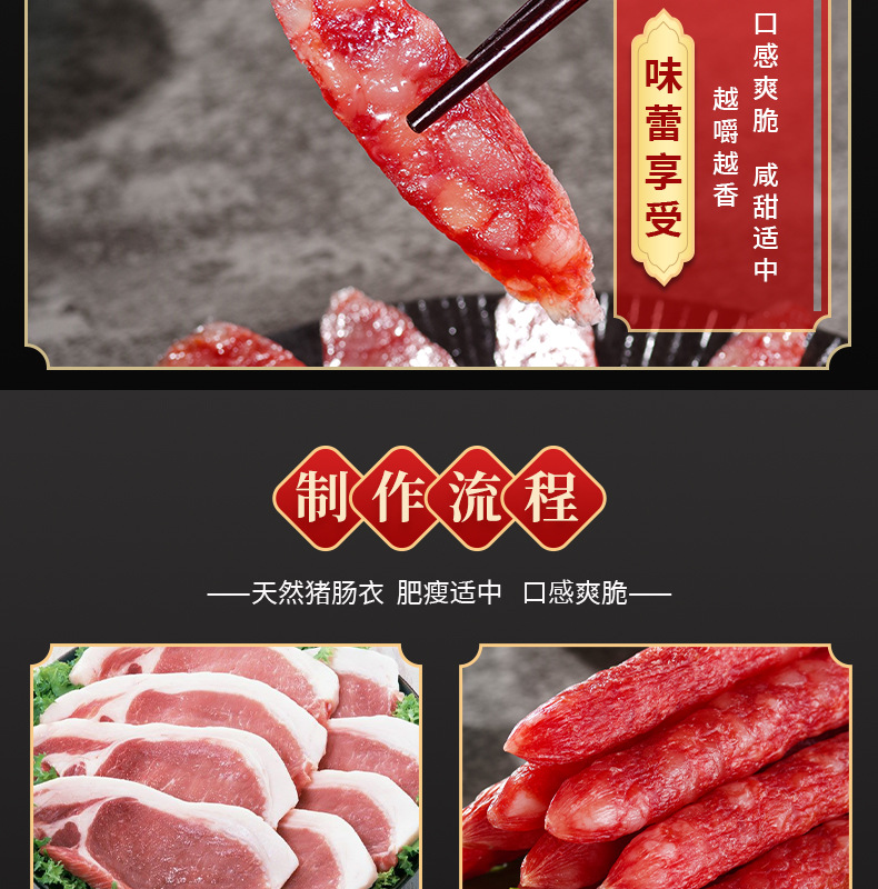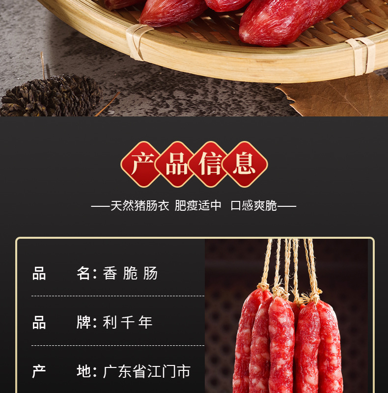 利千年广味腊肠500g真空袋包装广东腊肠咸甜口味家用腊肠厂家批发