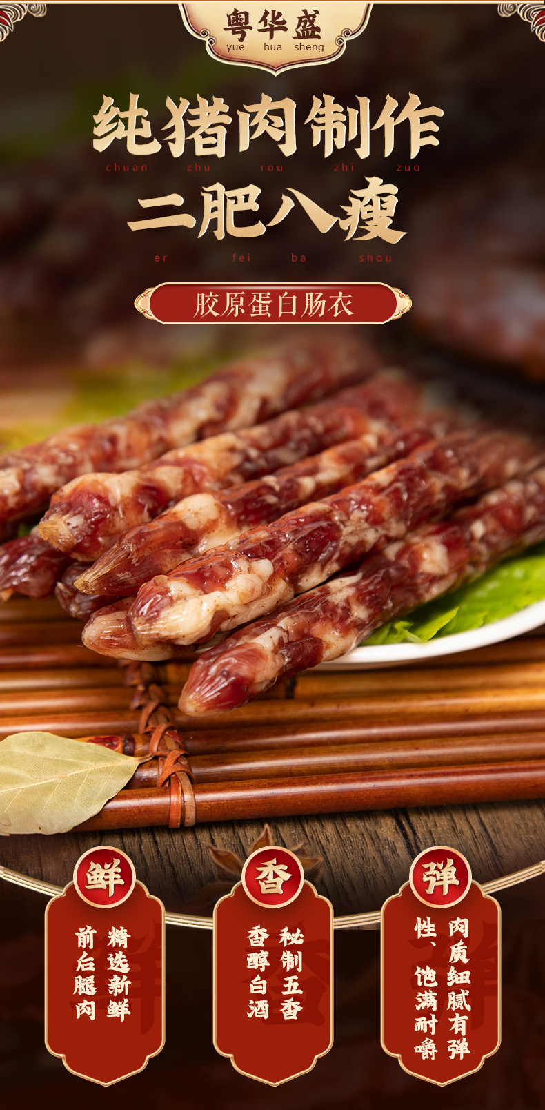 自然晾晒广东特产广味批发粤华盛厂家直批煲仔饭烧烤纯肉腊肠食材