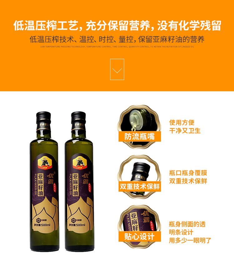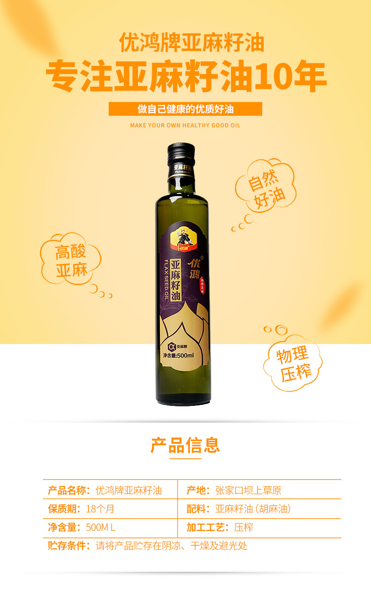 健康食用油压榨亚麻籽油500ml装厂家直供量大从优可批发零售