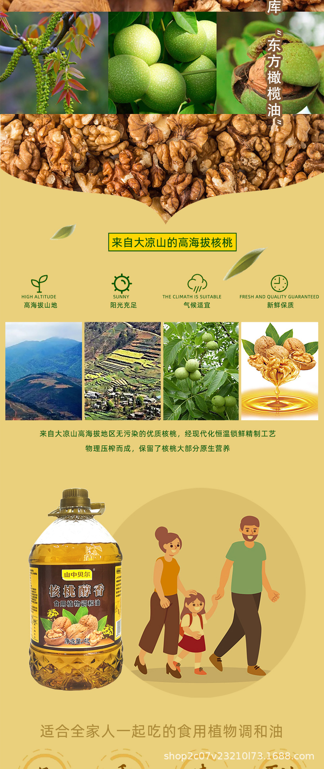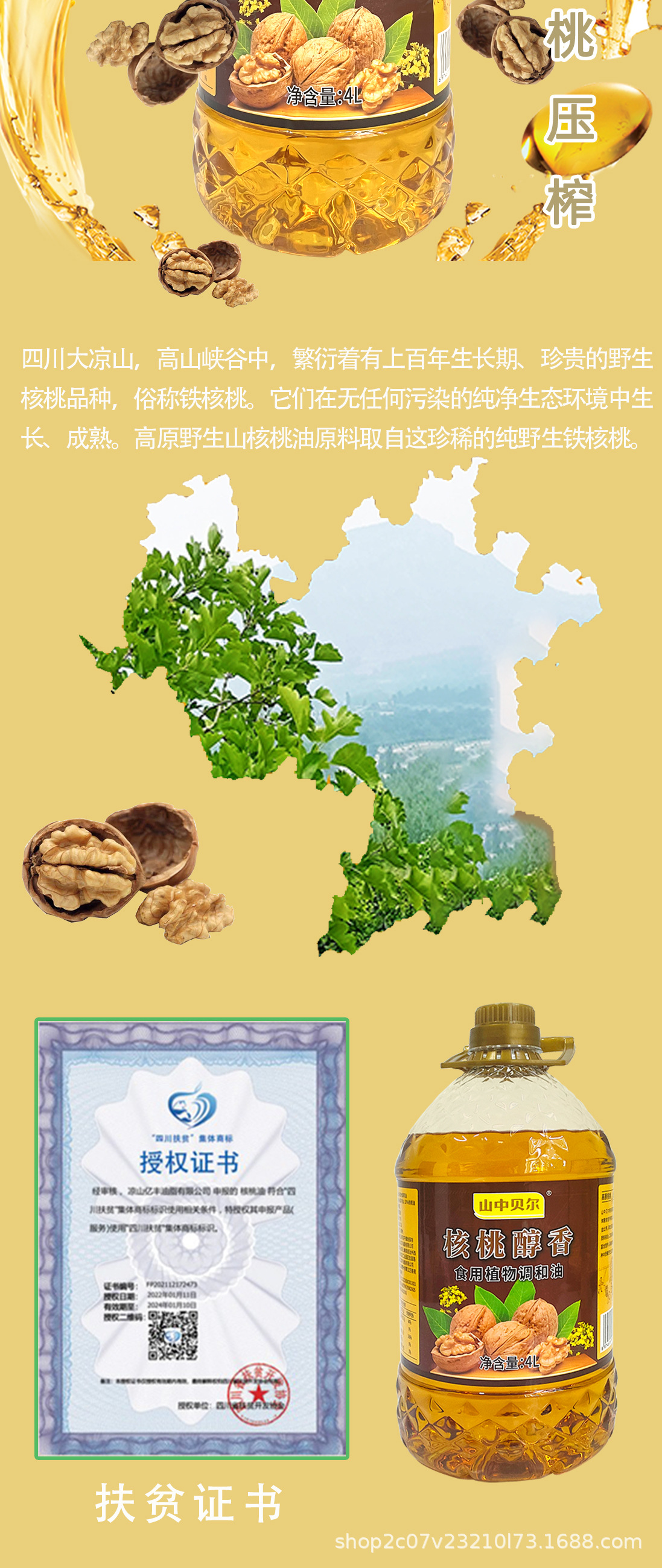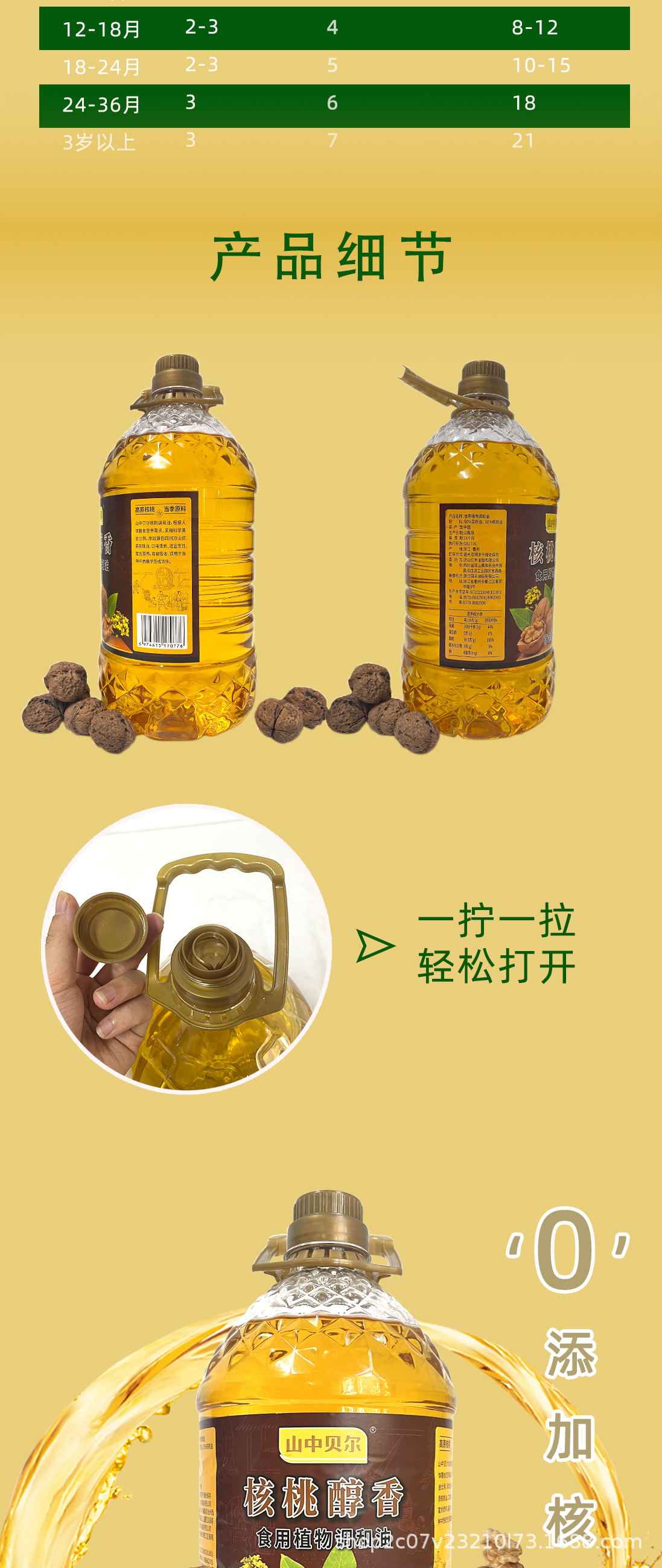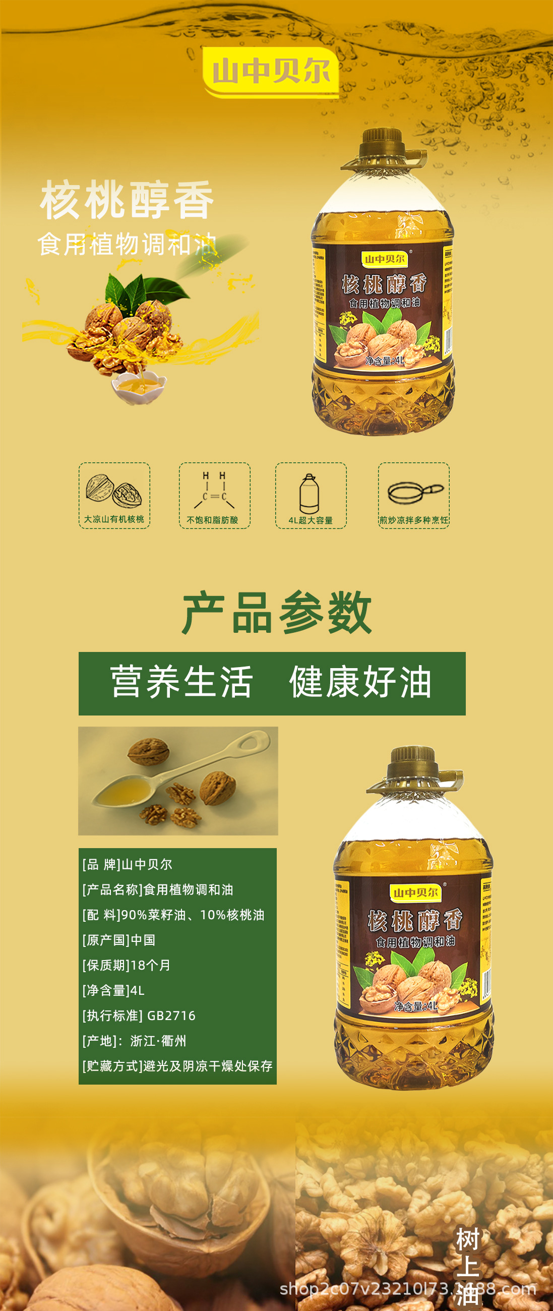 山中贝尔核桃醇香4L核桃菜籽油食用植物调和油工厂直发