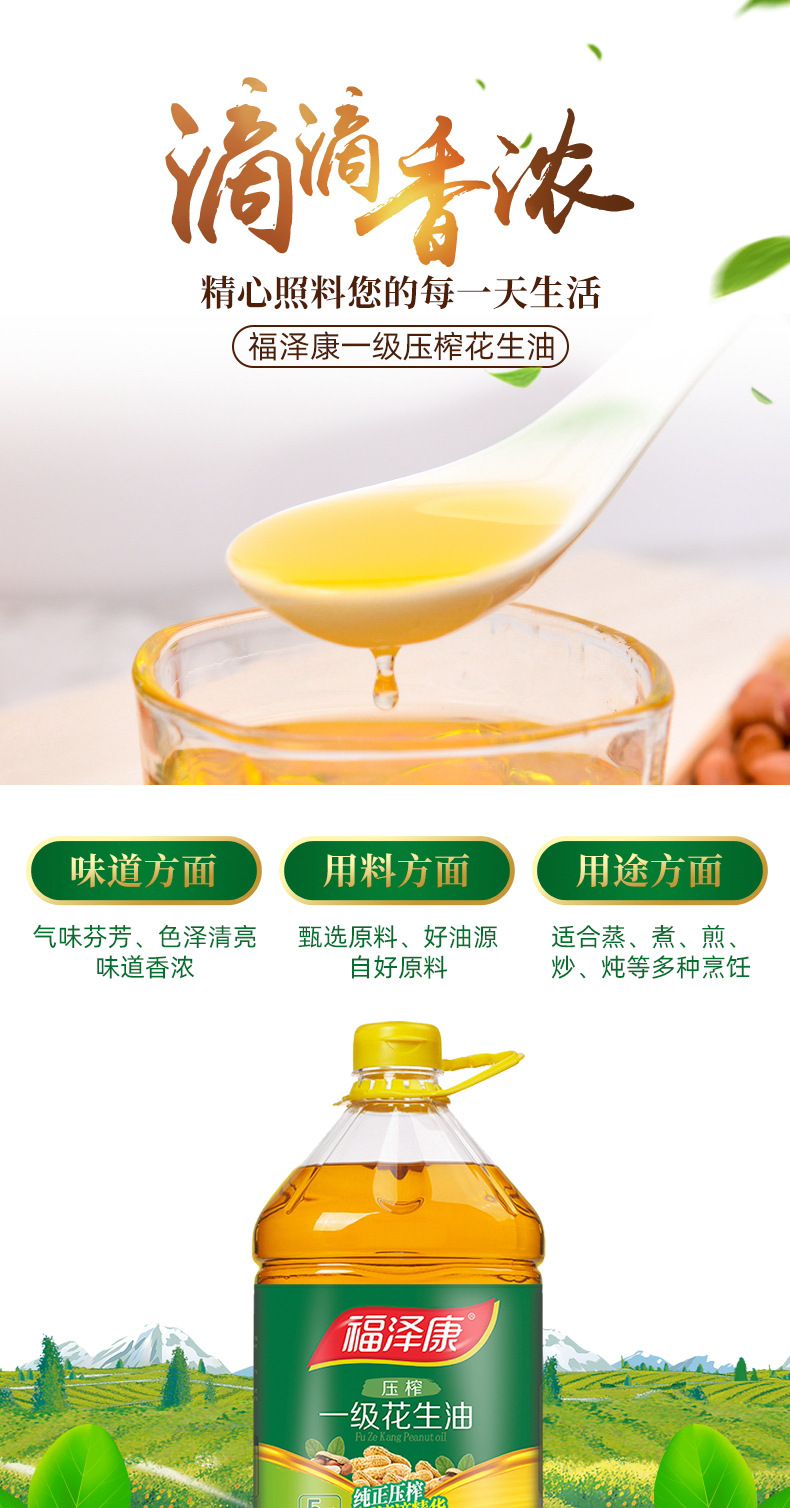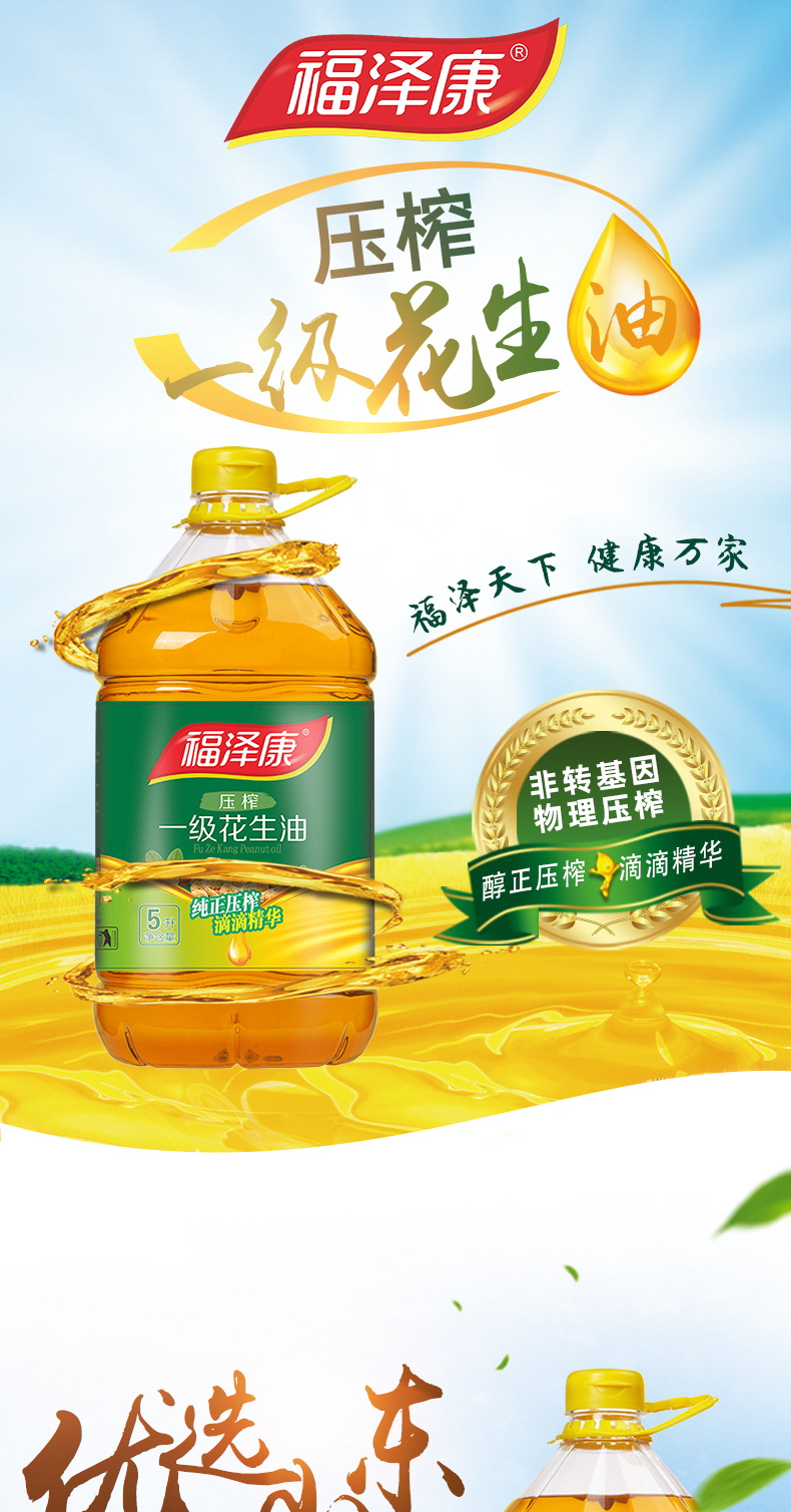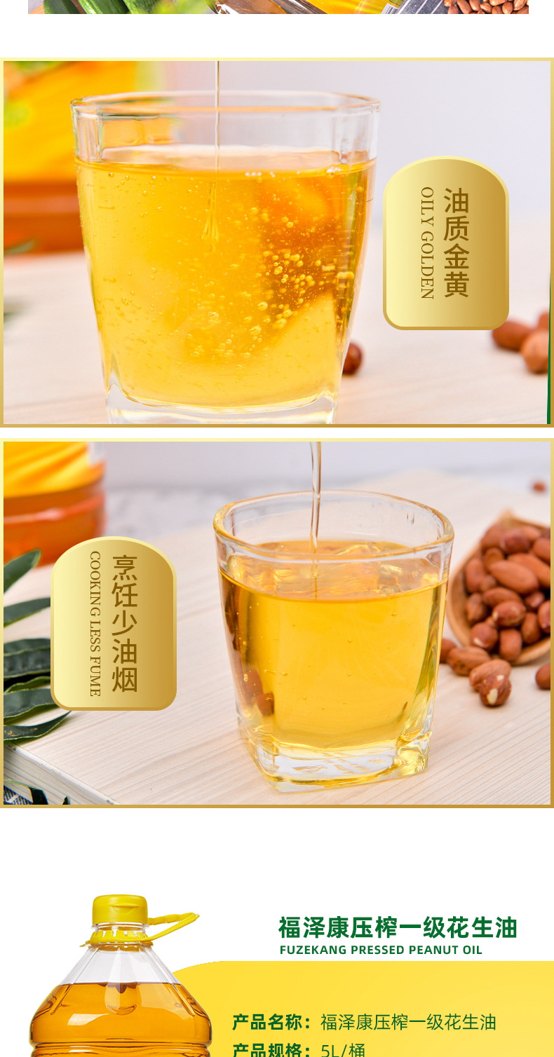 福泽康5L压榨一级纯正花生油物理压榨食用油粮油一件代发厂家批发