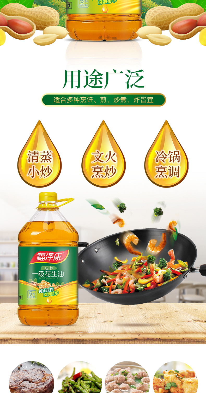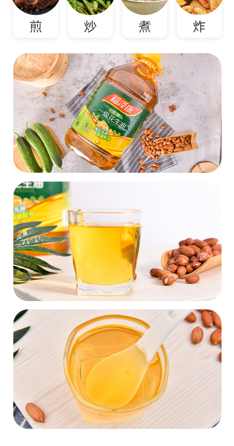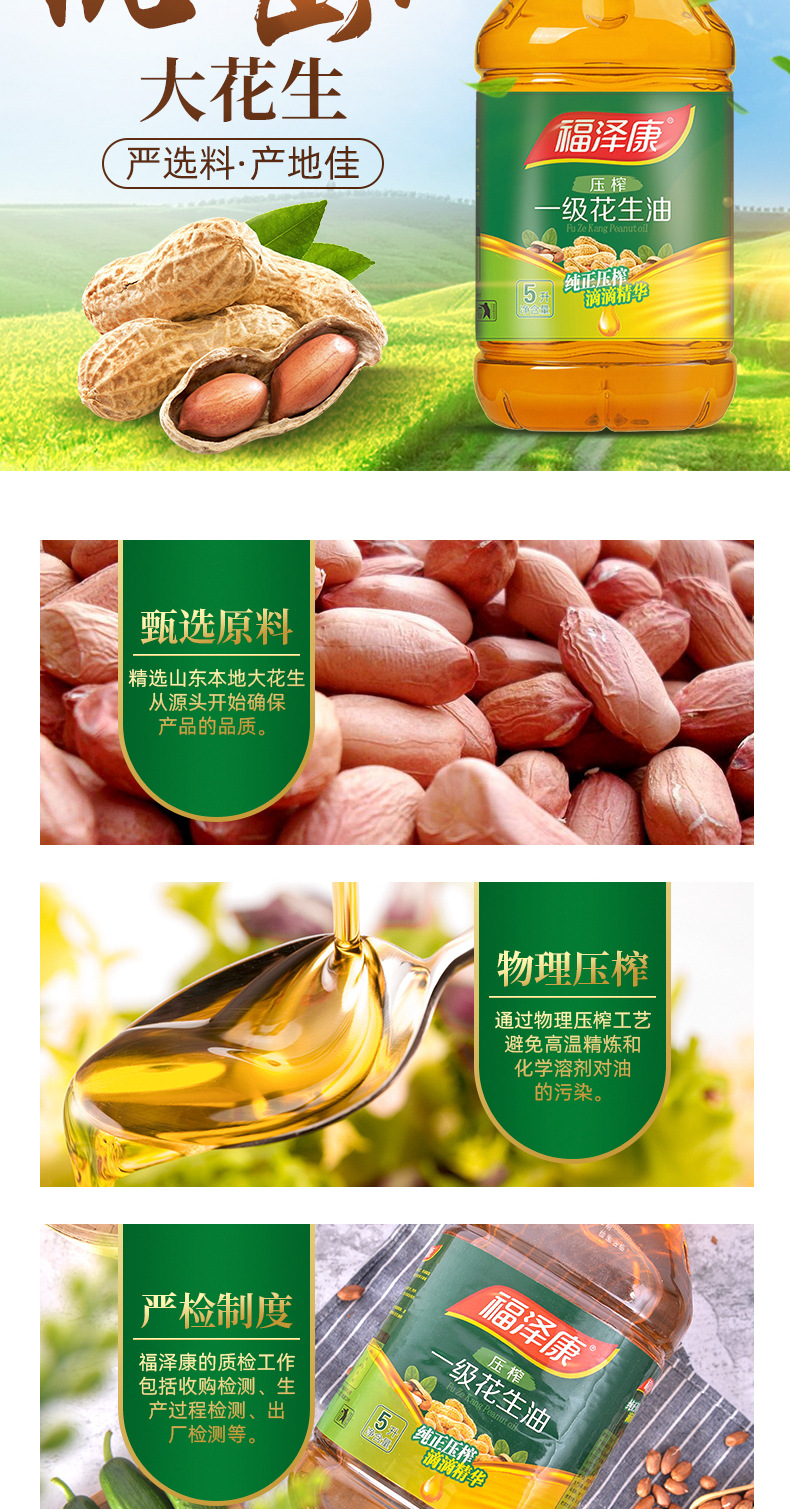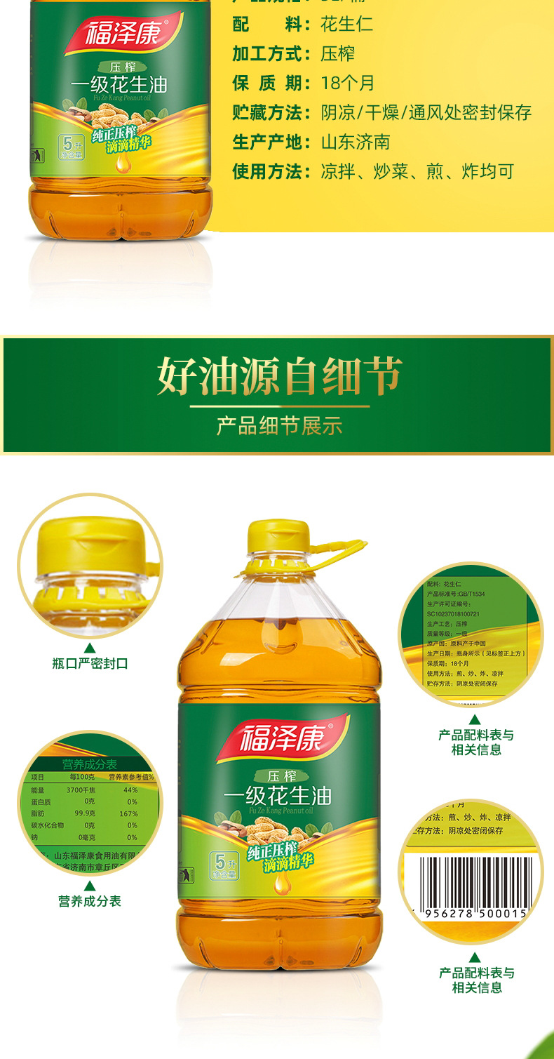 福泽康5L压榨一级纯正花生油物理压榨食用油粮油一件代发厂家批发