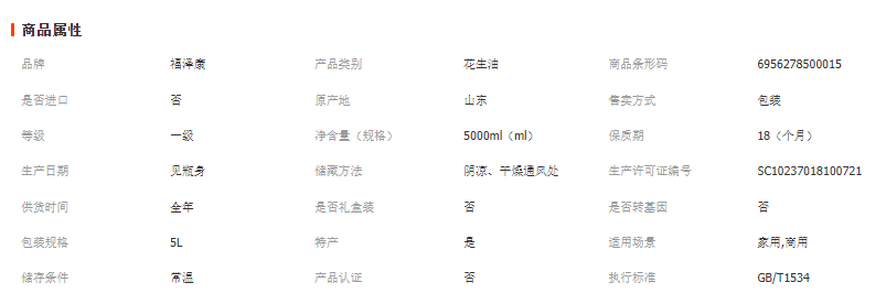 福泽康特香小榨一级食用油 粮油植物油 批发商用家用纯正花生油5L